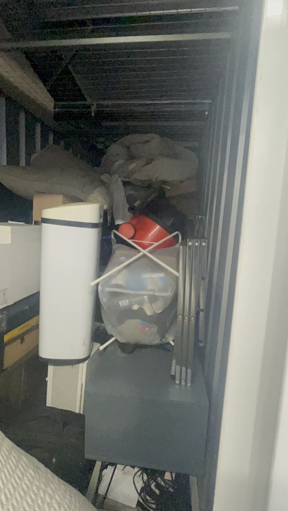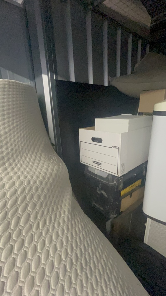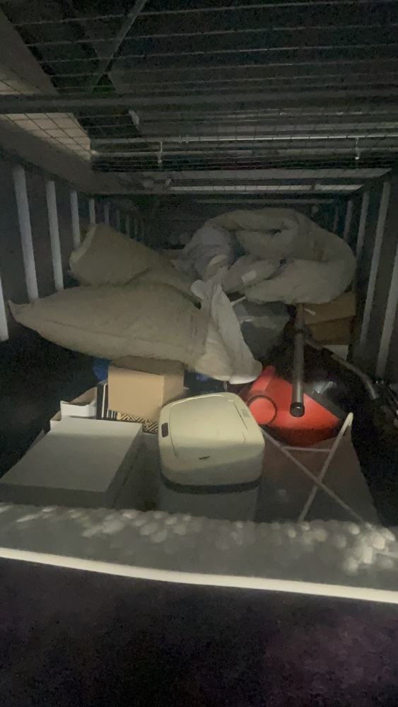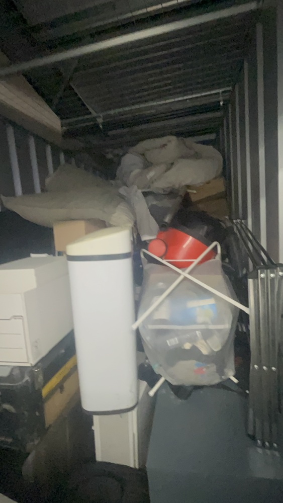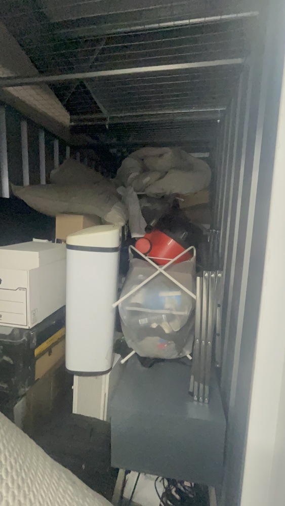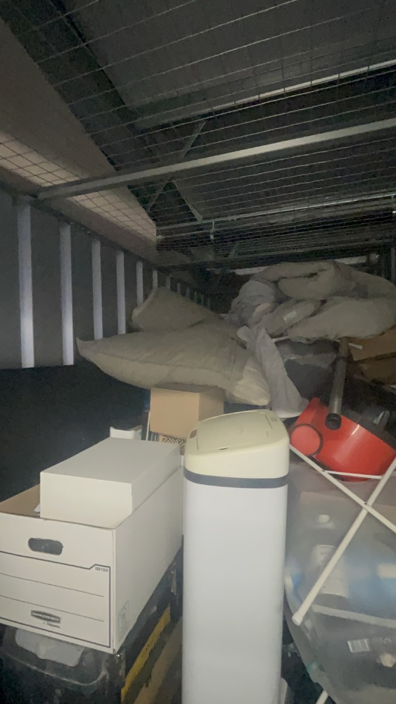 Unit has household items including a mattress. Also it contains a vacuum and boxes, bedding and limited access to take photos