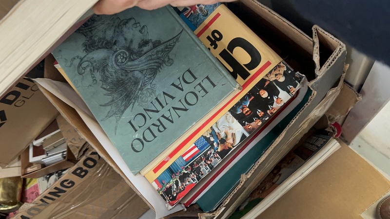 various items including personal effects and tools, as per photos. Some books several decades old as per photos and other items.