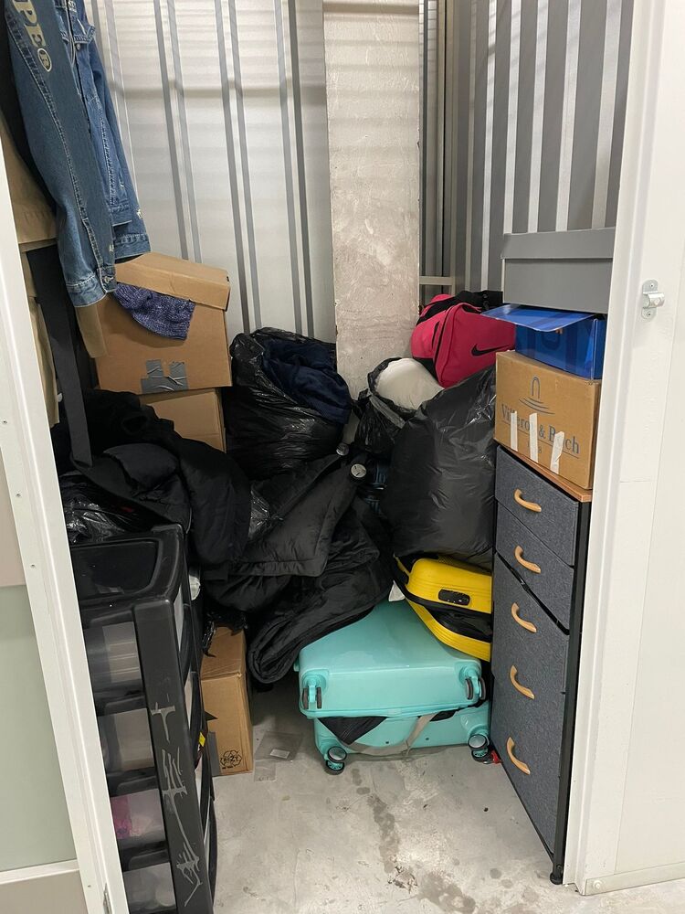 Only the registered person who won the auction can pick up the storage unit contents.