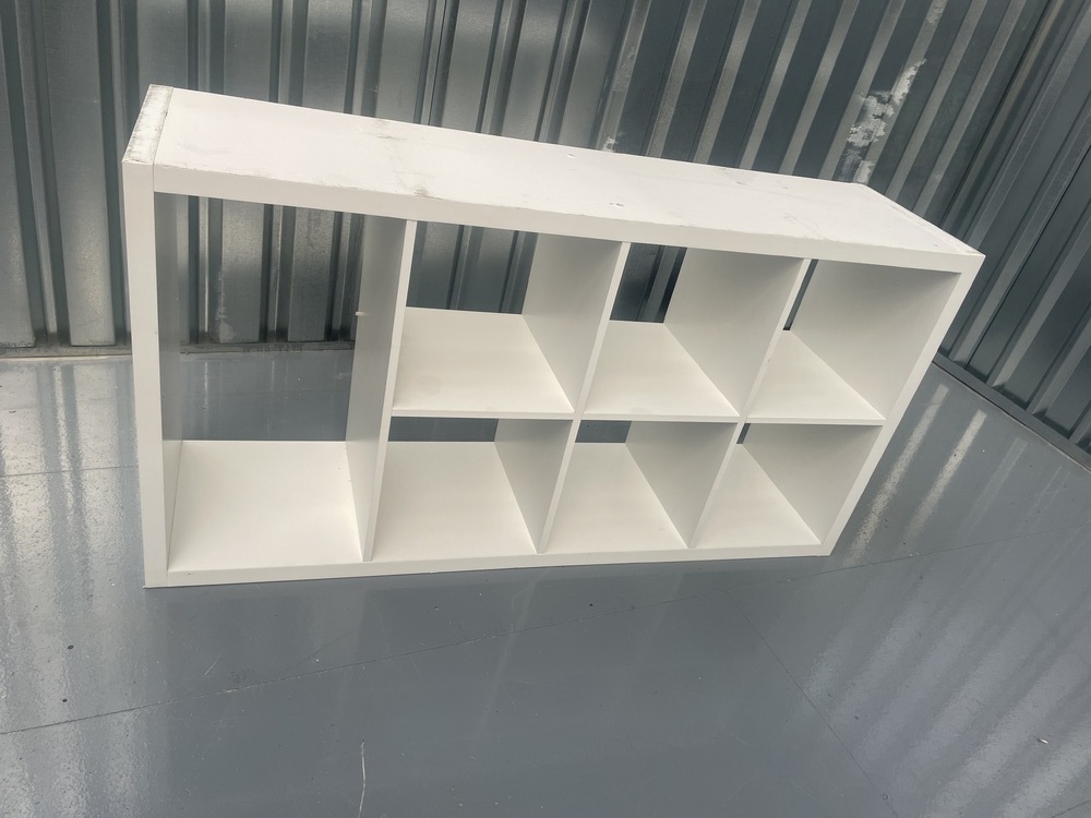 White wooden shelving unit