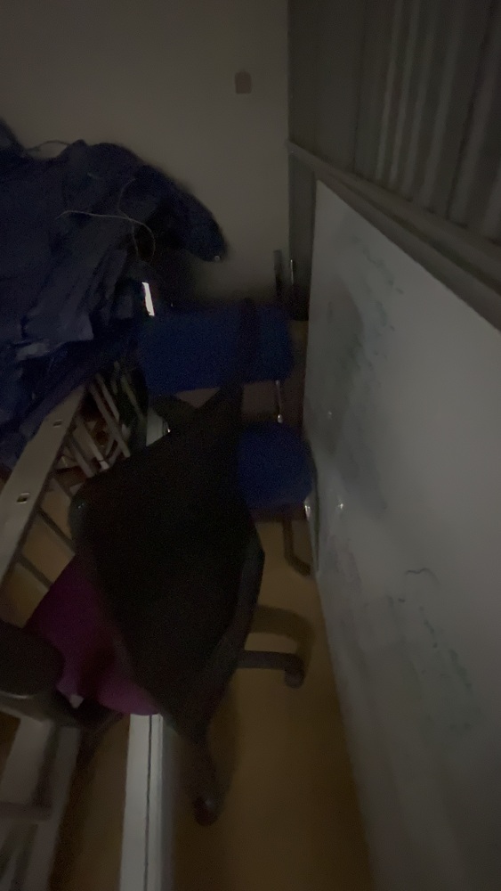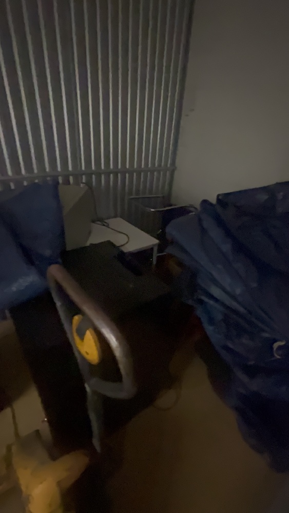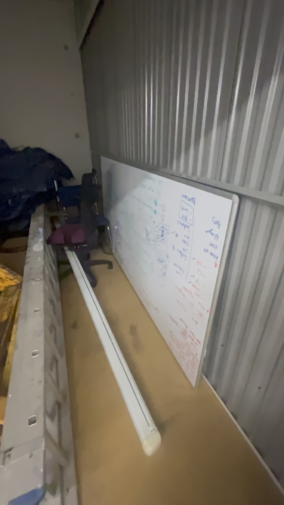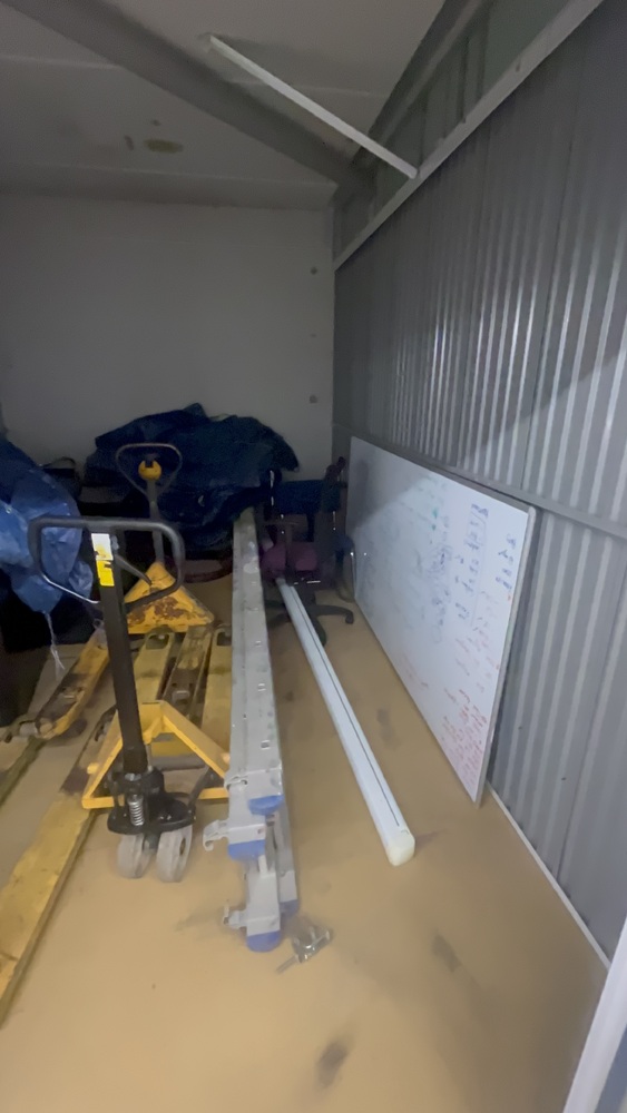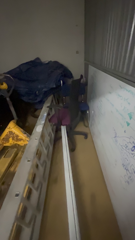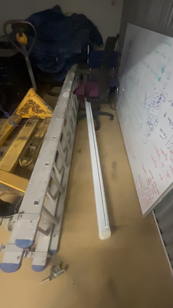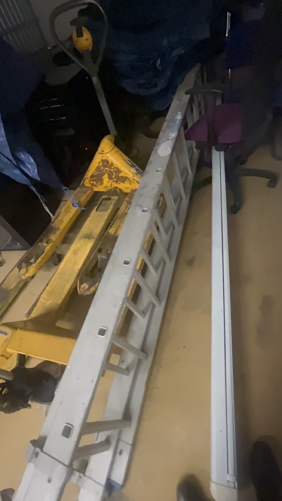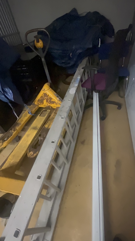 Three pump trucks that need attention, IT/server cabinets, office chairs, large white board and large projector screen. Soft furnished chairs.very large heavy duty ladder.