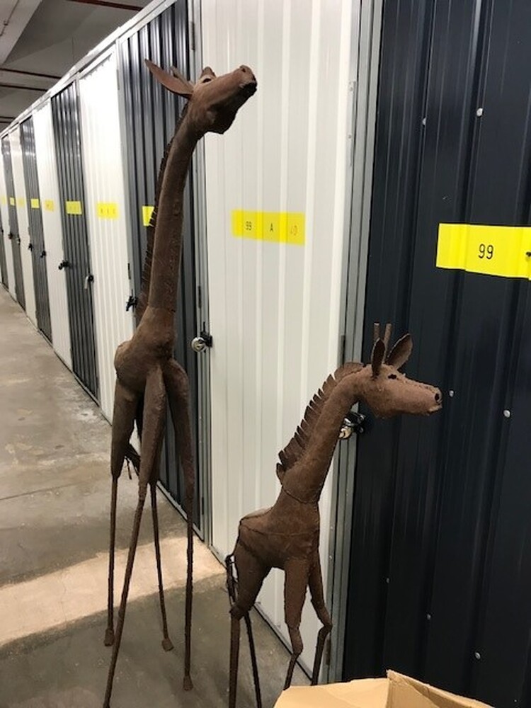 - 2x Metal giraffe sculptures