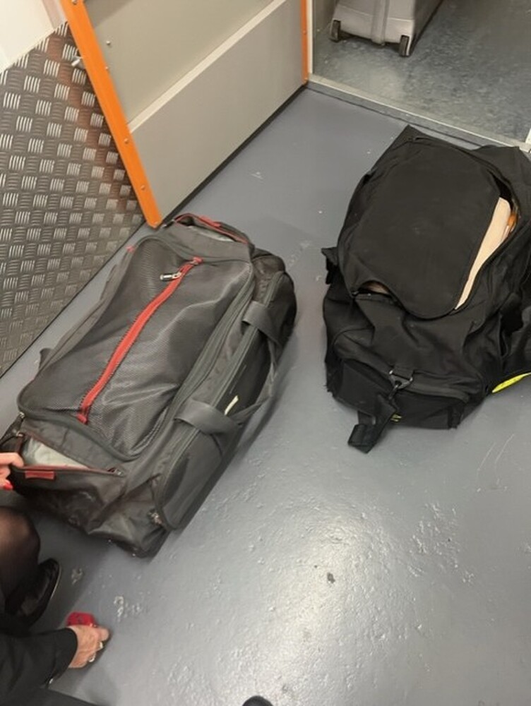 Grey suit case and two bags