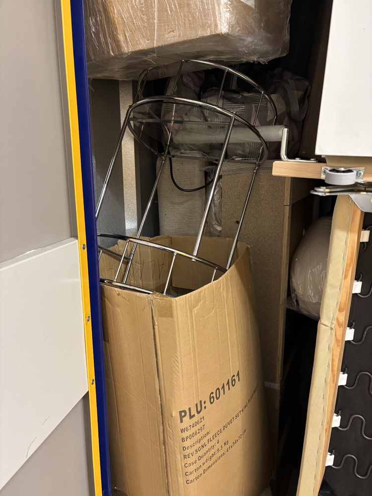 Dangerously stacked- please take care when opening