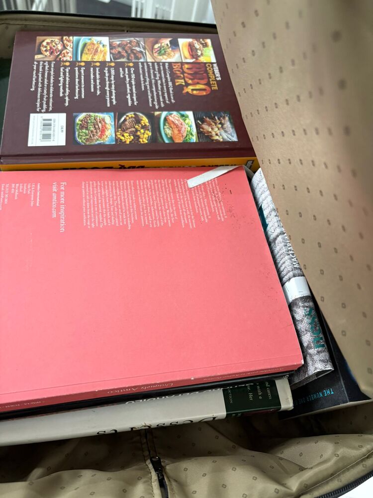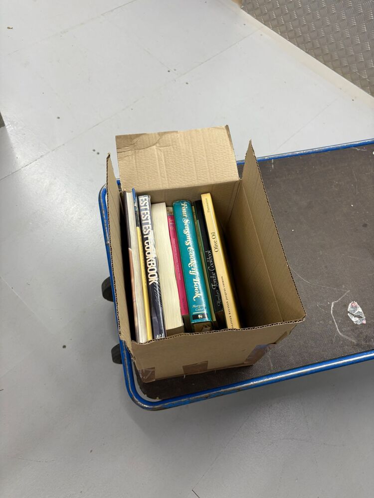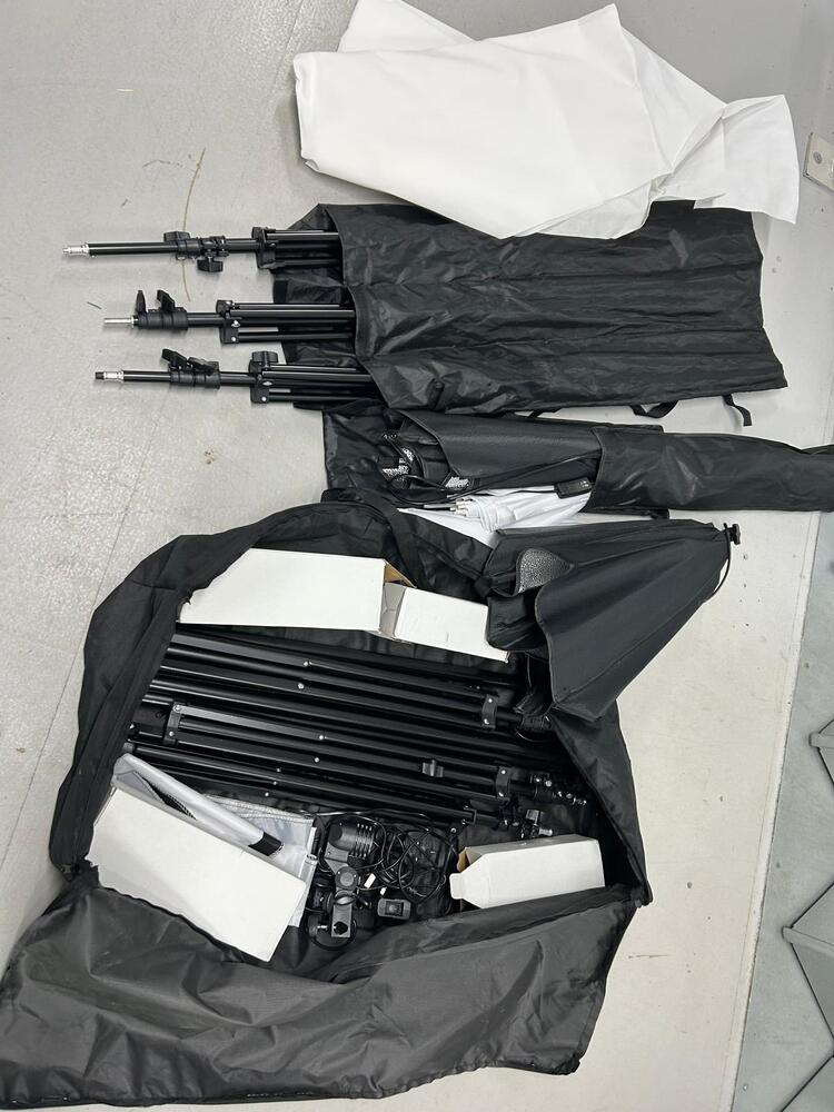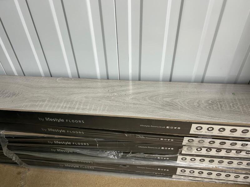 Various household items, including garden furniture. Photography lights, laminate flooring, display cabinets, boxes of books/cd's