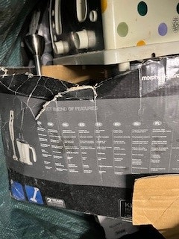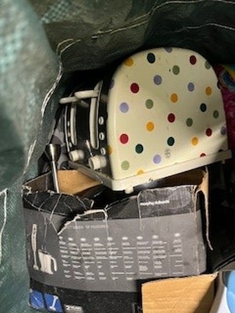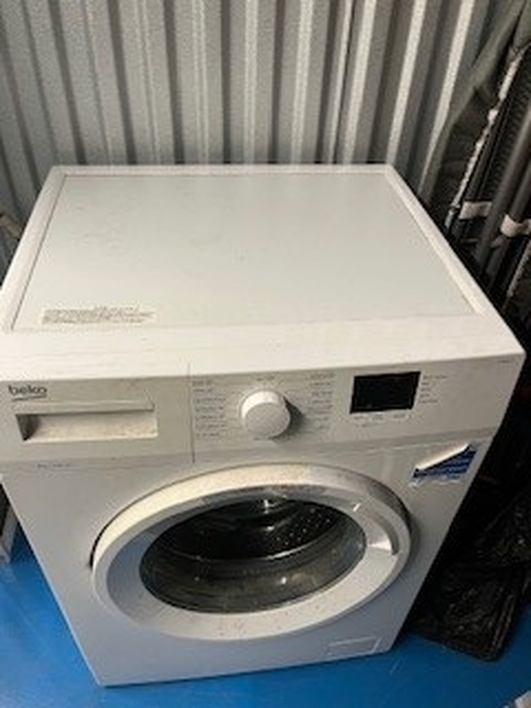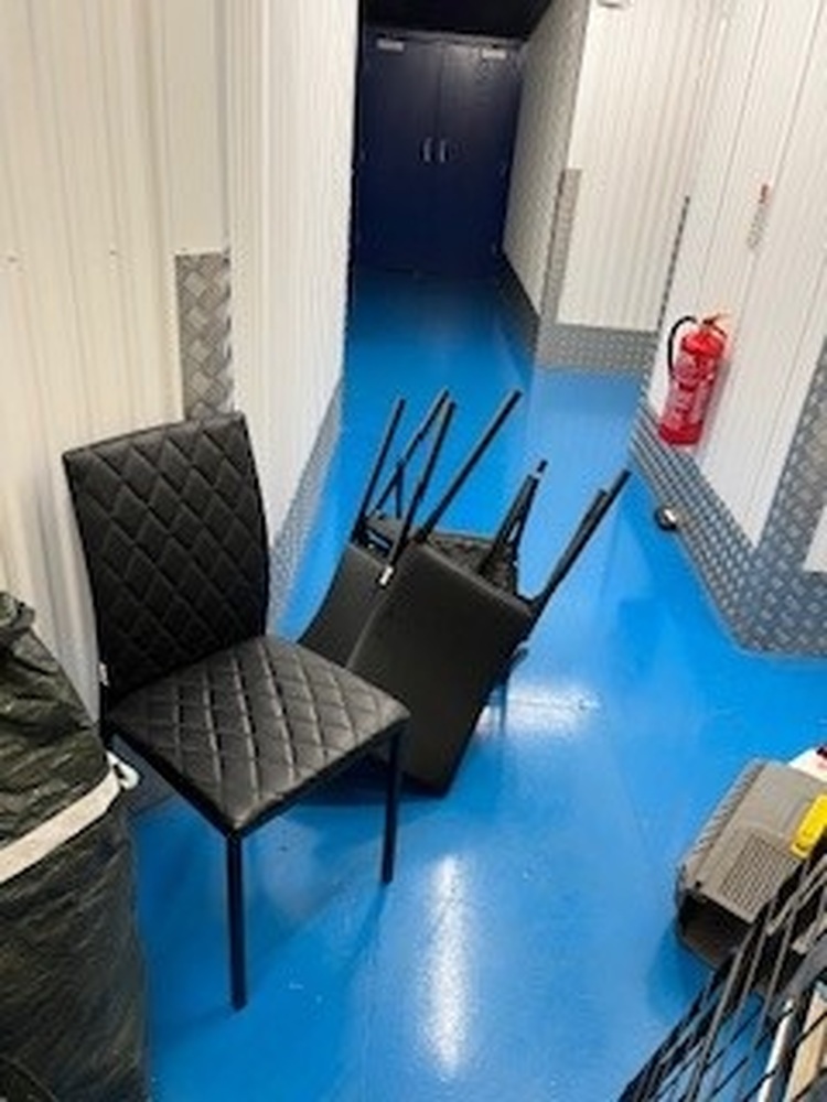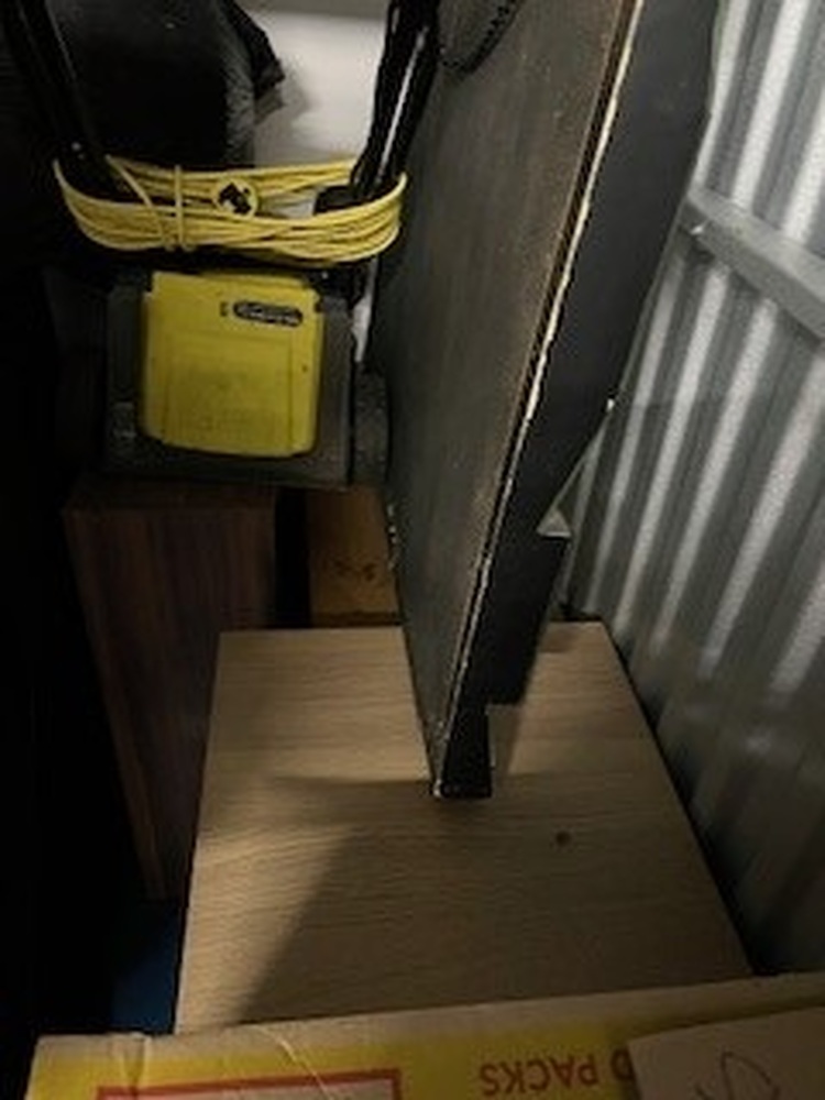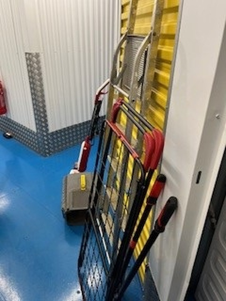 This 35 sqft unit contains a BEKO washing machine (model WTK82011W), 1 large laundry-style bag containing children’s toys, a small karaoke machine various clothing. The unit contains various household items including 4 black leather-effect chairs, 1 silver-framed mirror, 1 ironing board, 1 Challenge lawnmower (model ME1031M), 1 oak-effect storage unit with canvas drawers, various wall canvases, 1 set of aluminium stepladders (Beldray), 1 large laundry-style bag containing small electrical kitchen appliances (including a hand blender, dual toaster and Babyliss Body Benefits items), various small shelving units and dark wood-effect sideboards, and various PlayStation 4 games, 1 Dirt Devil steamer, 1 VAX vacuum cleaner.