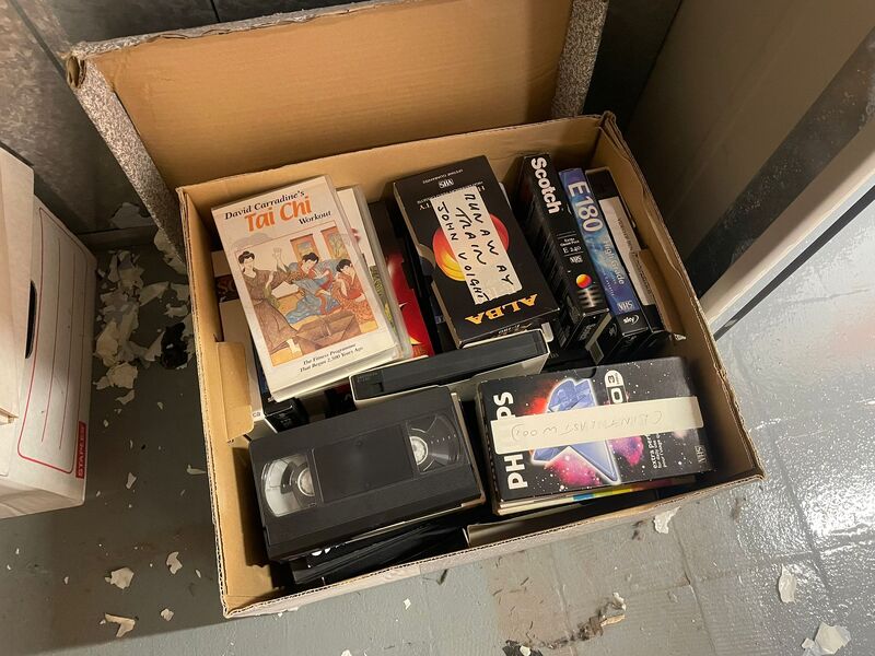 Box of video tapes