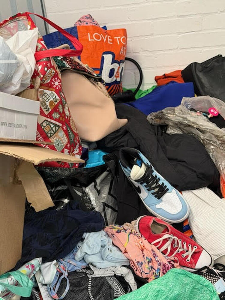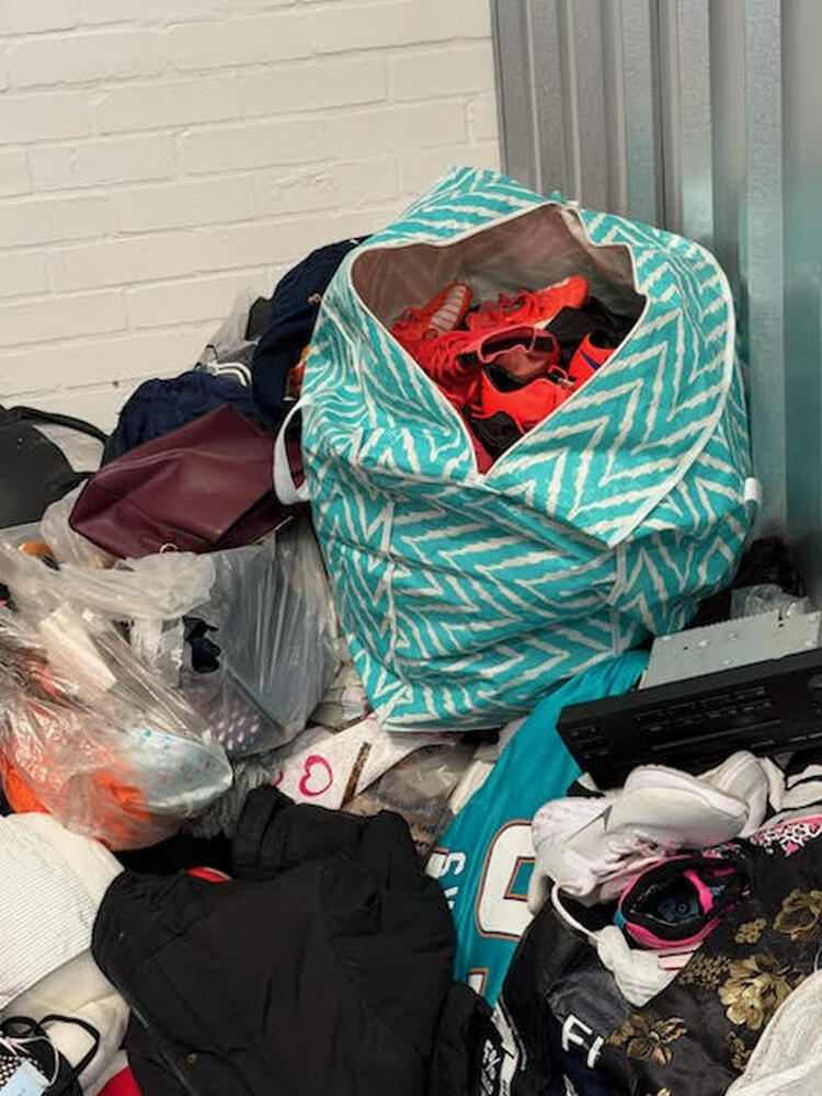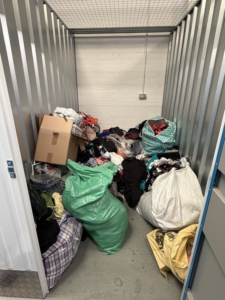This is a 50sqft unit containing bags of clothes and household items. The items visible are clean and in good condition. The content include a lot of high end trainers/sports shoes, mainly Nike but also Converse etc.
