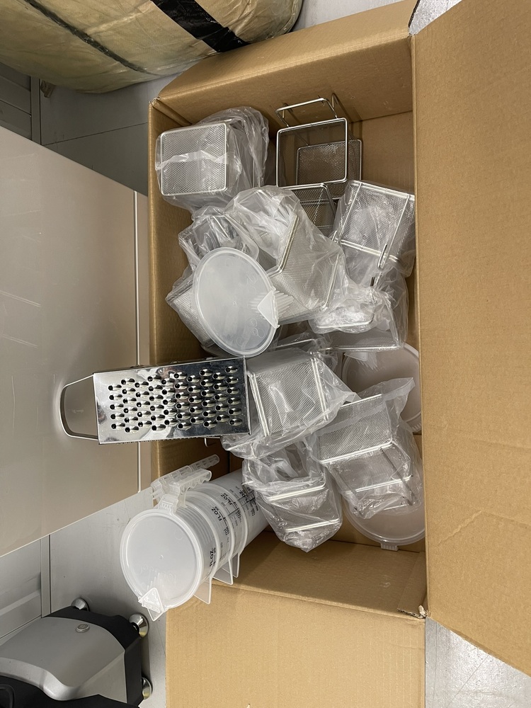 5. Box of fryer baskets, jugs and a grater