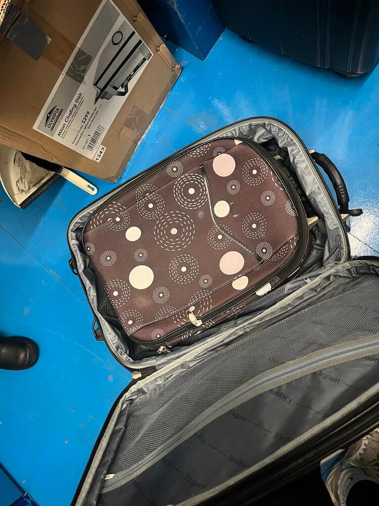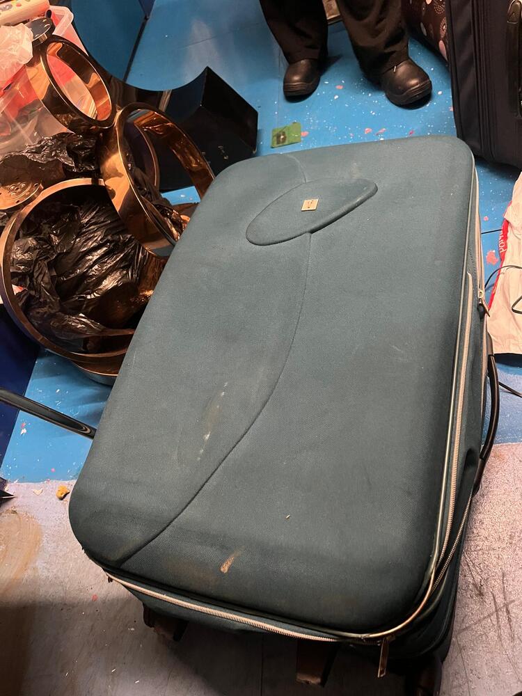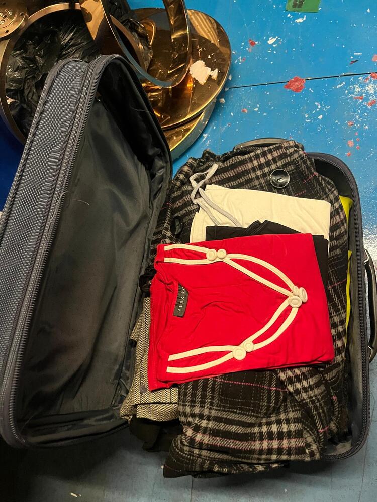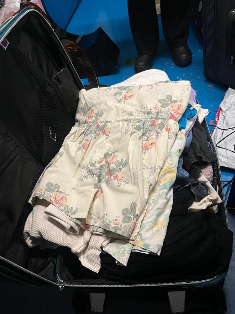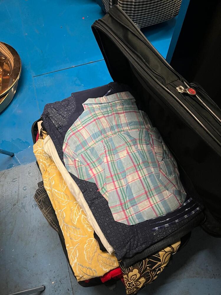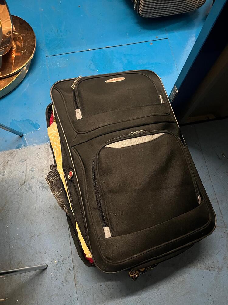 [ ] Navy suitcase with clothes