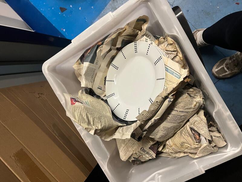 [ ] Box of kitchen crockery