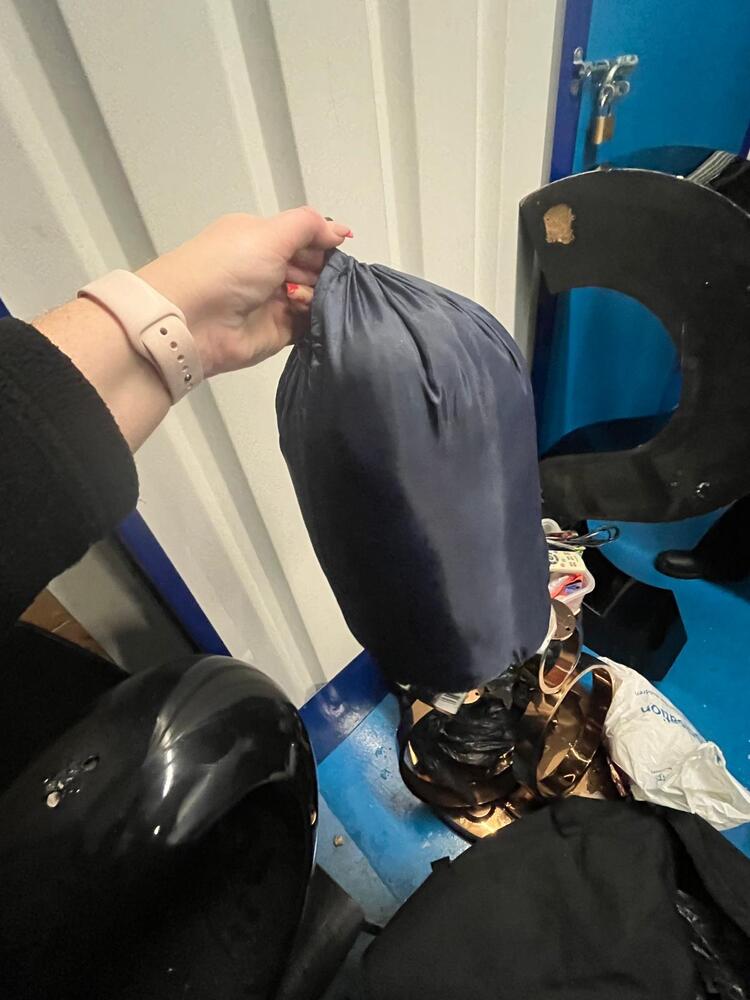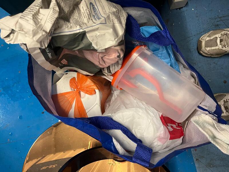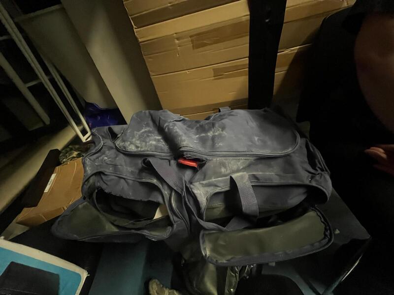 [ ] Big blue holdall with clothes