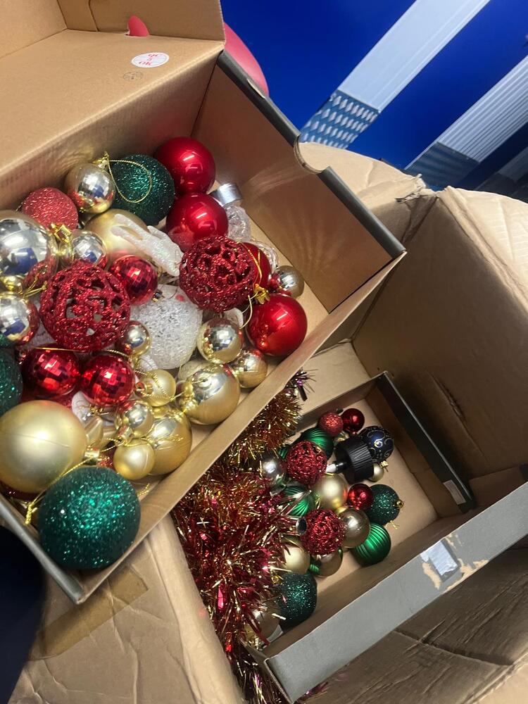 Box of Christmas decorations