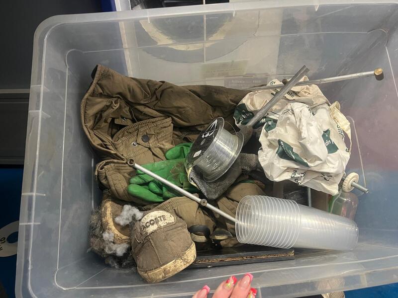 Box of fishing clothing