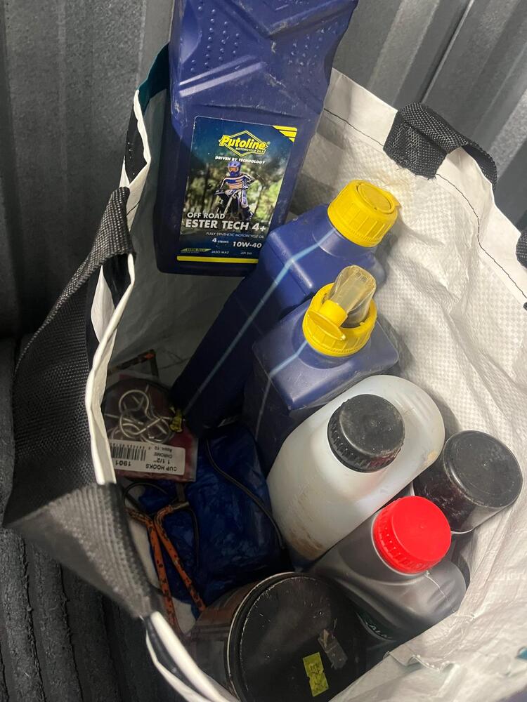 Bag of engine oils and miscellaneous items