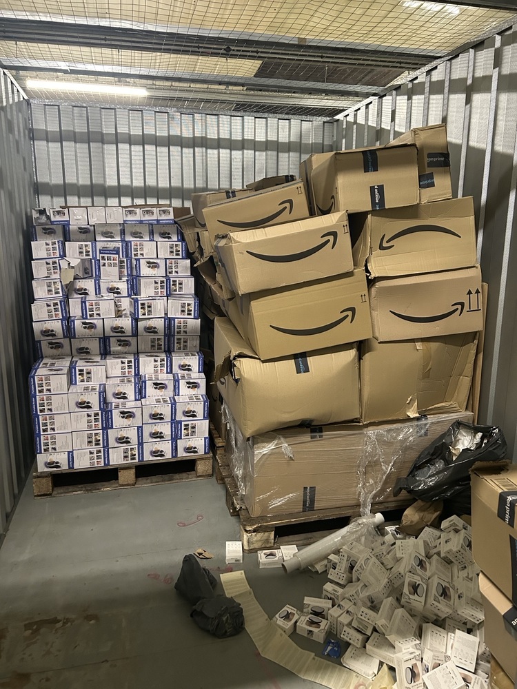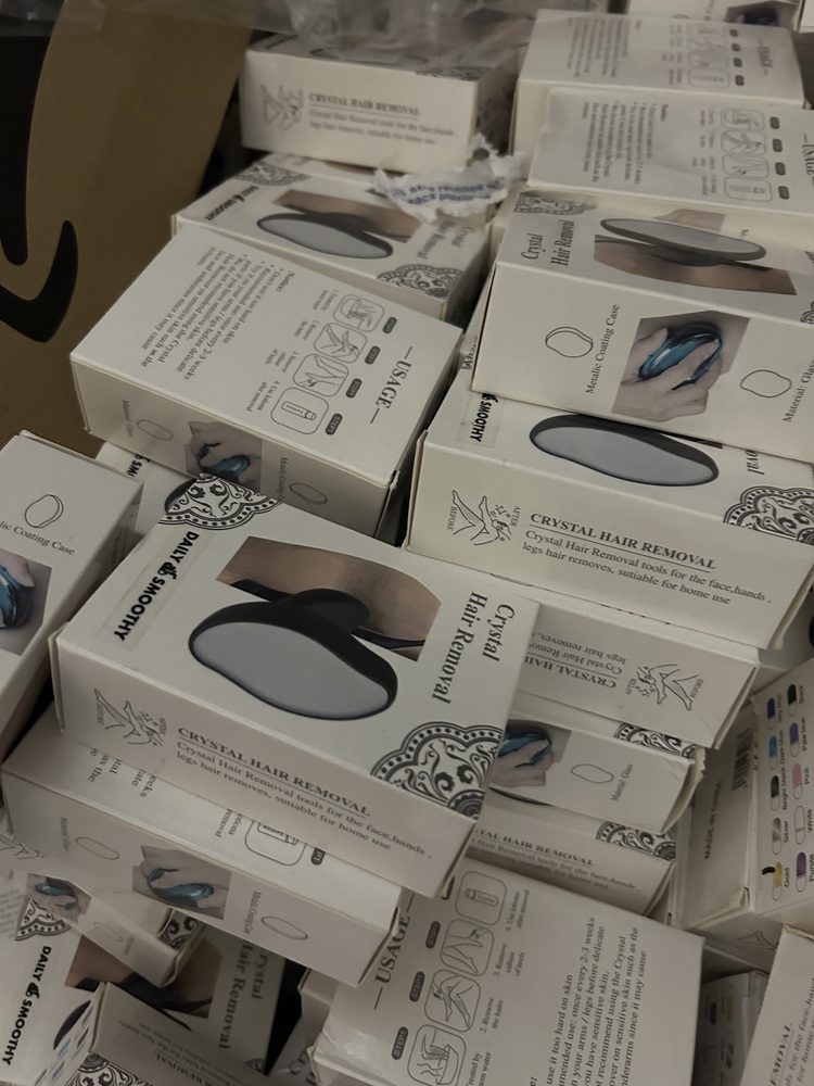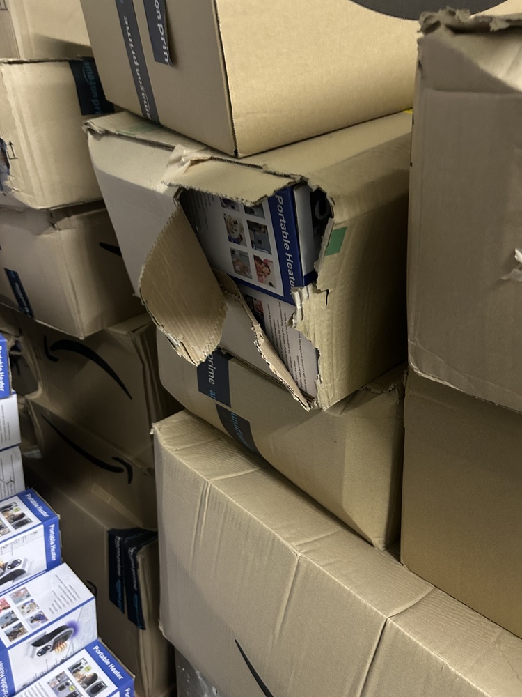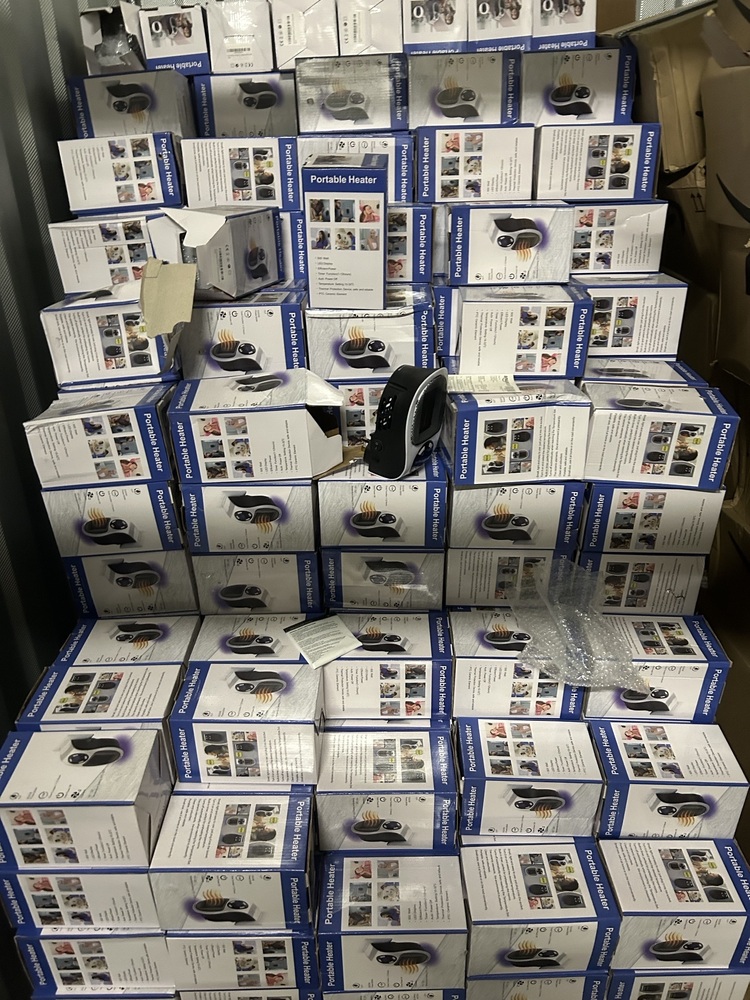 Contents in units. Unit filled with small 500-watt portable heaters all packaged, includes a lots of amazon boxes also containing lots of the same small heathers unit also has some small crystal hair removal devices.