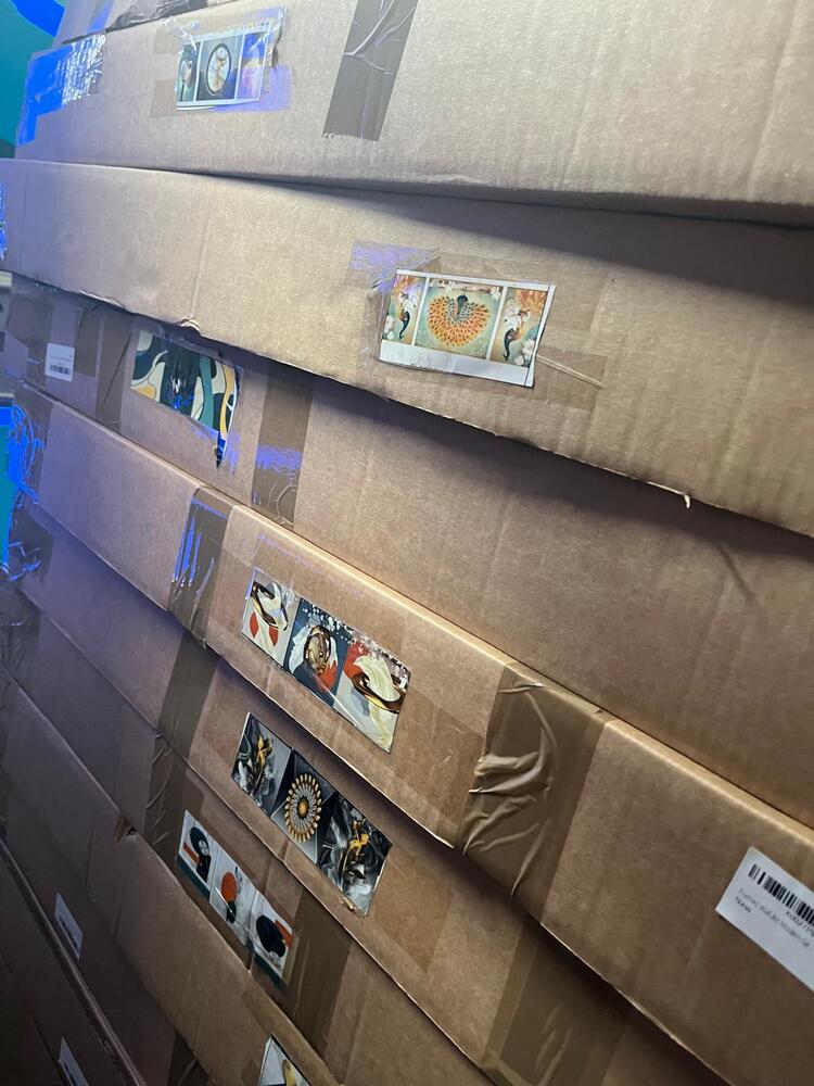 Approx 6 large boxes of pictures, half moon shape