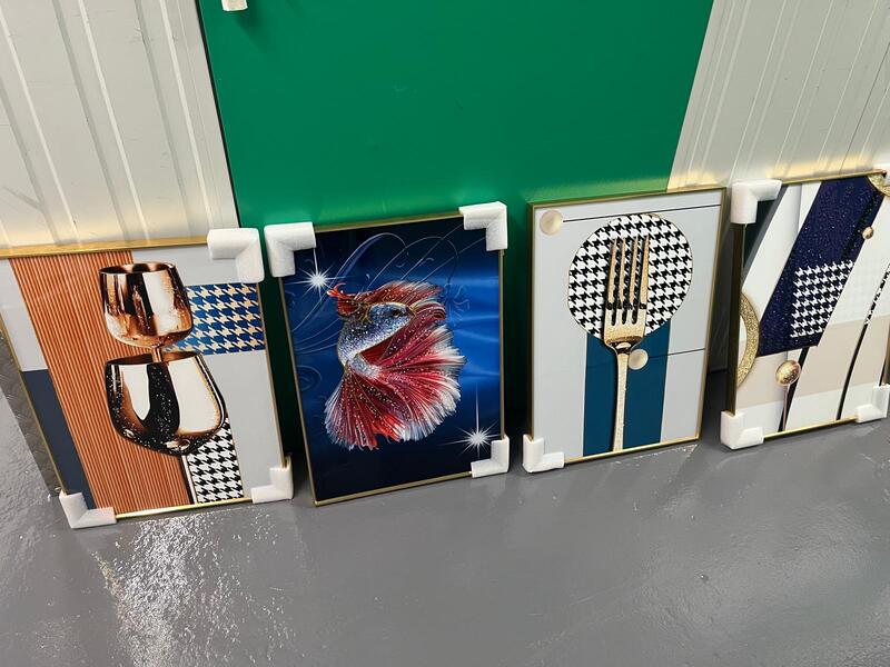 Approximately 60 Boxes of pictures containing 3 pictures in each box crystal effect pictures various designs