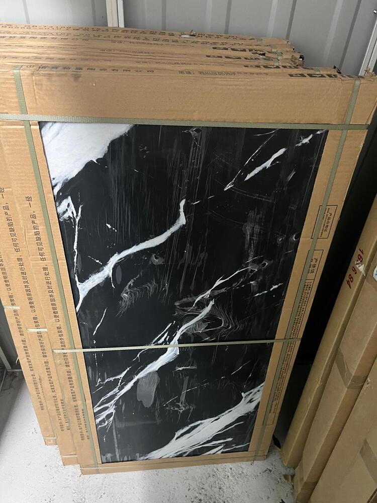 6 boxes containing 3 tiles in each box of large black and white marble effect tiles