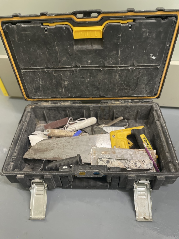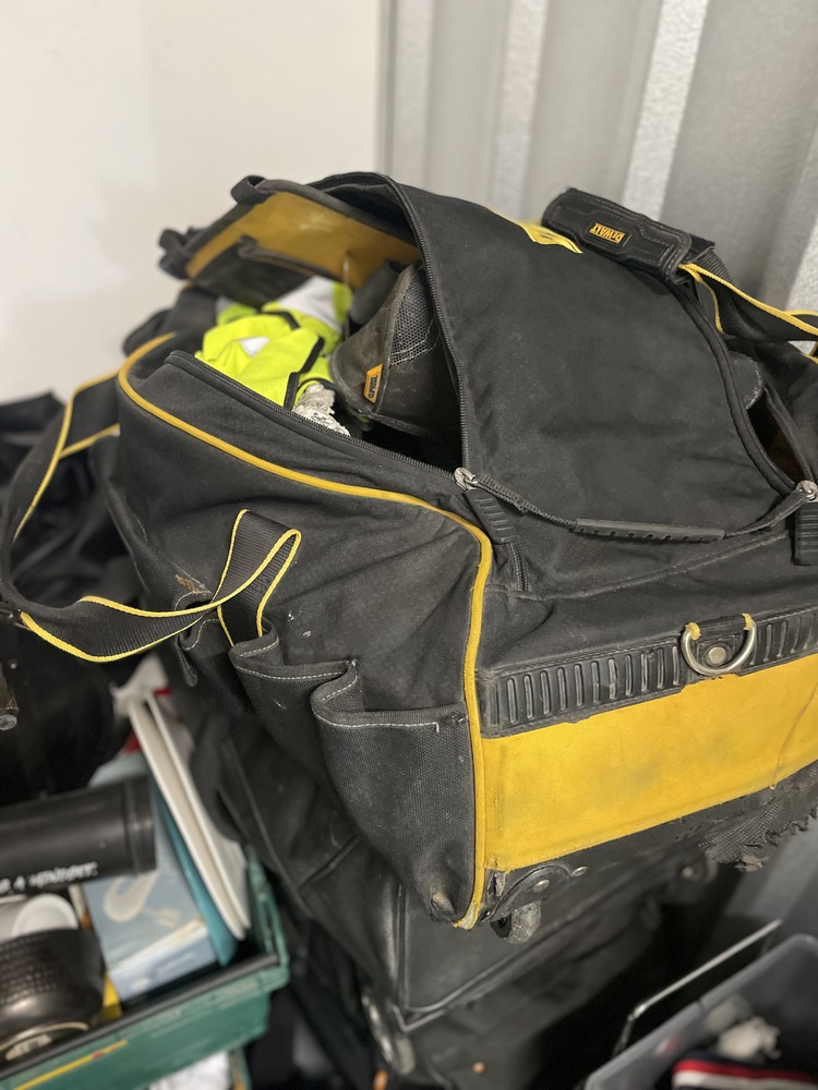 Dewault toolbox containing clothing