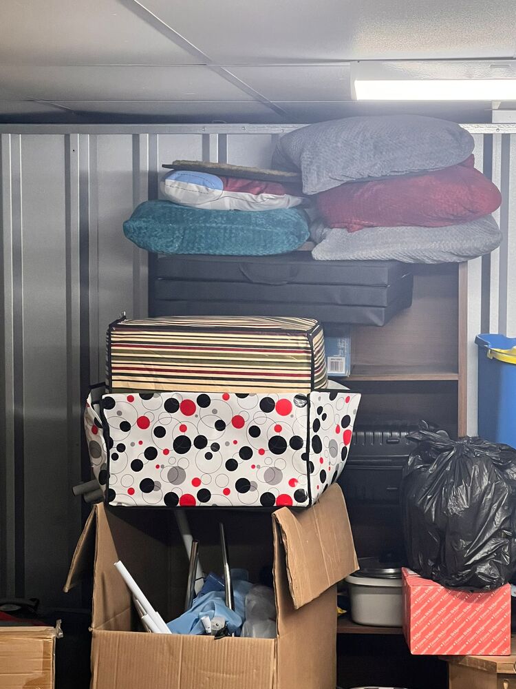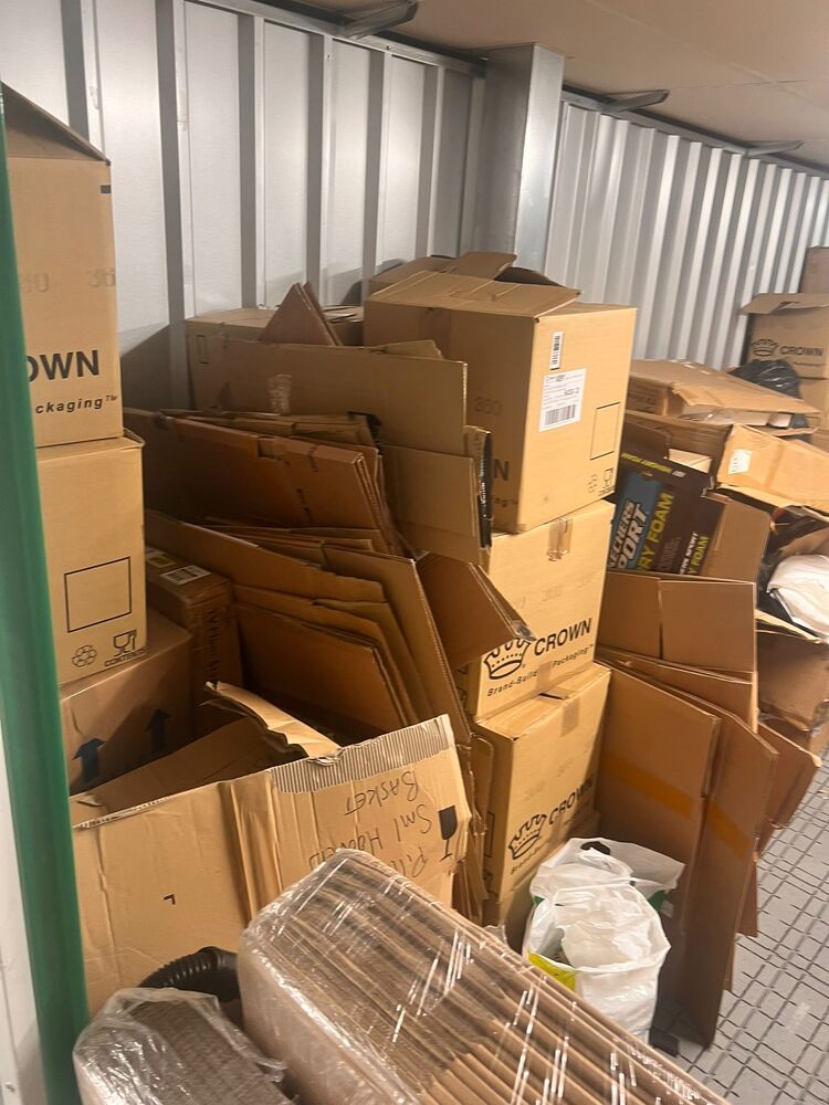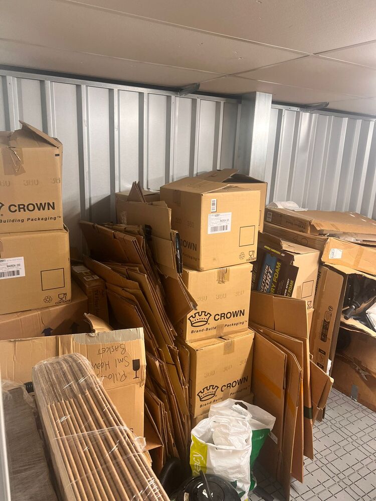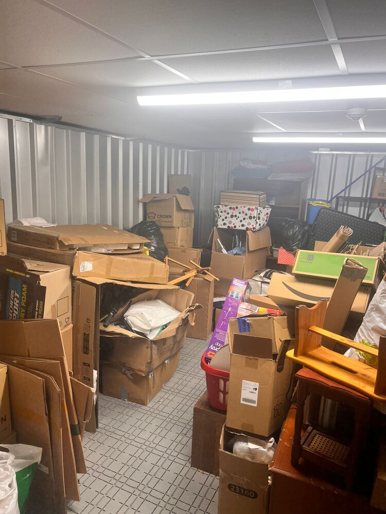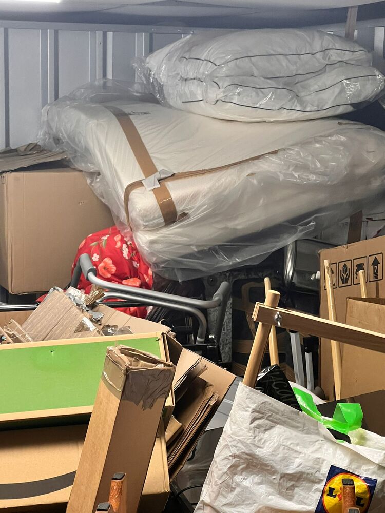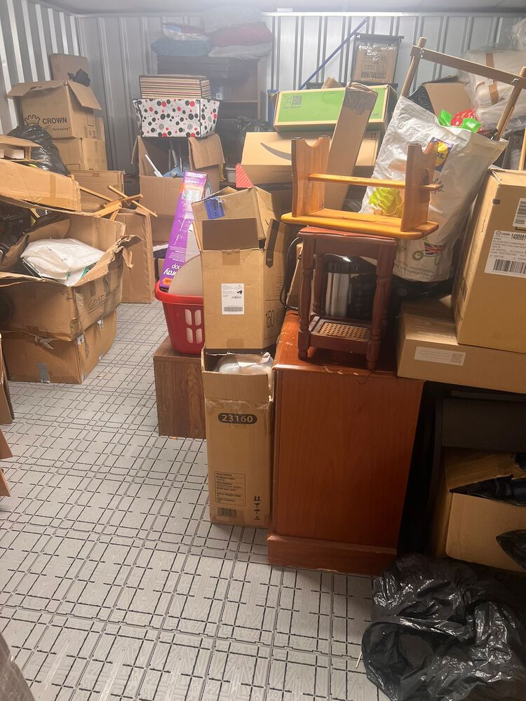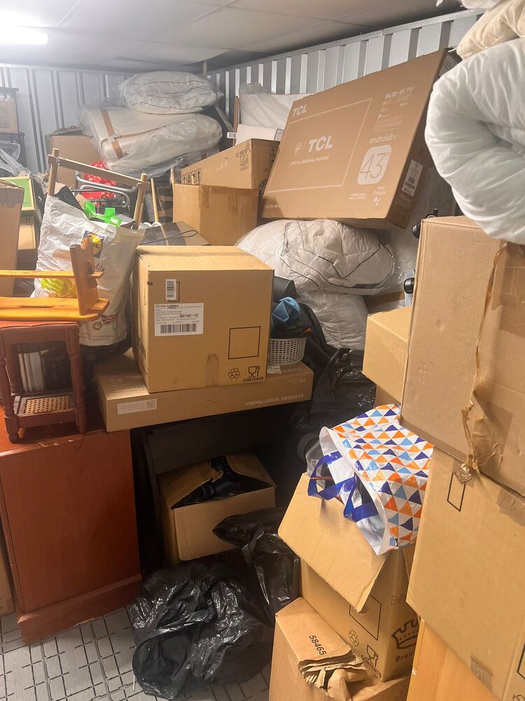 Boxes, miscellaneous items, vacuum, other bags, small furniture plus other items, all left as the customer left them, untouched