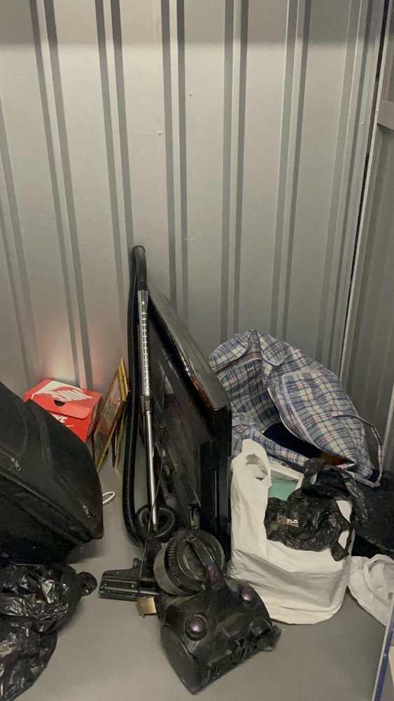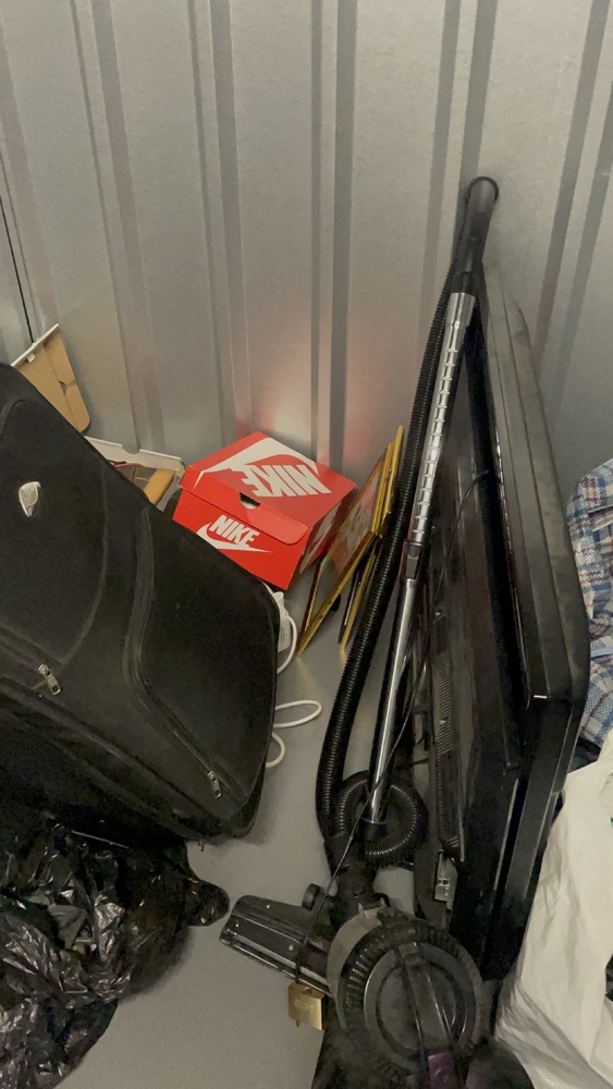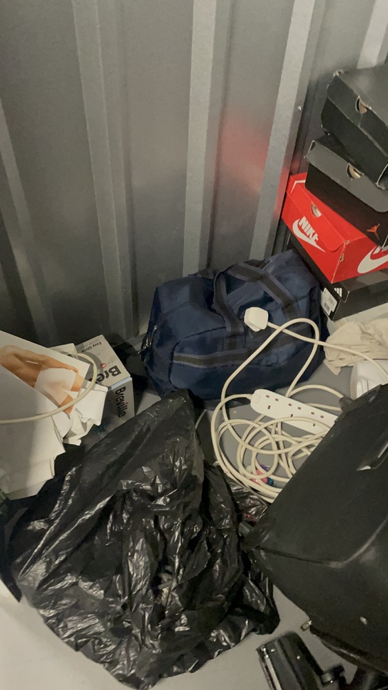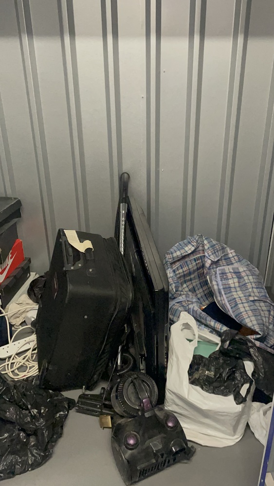 This 25 ft.² unit had four boxes of potential Jordan Nike shoes, one sets of Adidas football boots, two flatscreen TVs, one vacuum cleaner a suitcase and bags of personal fix