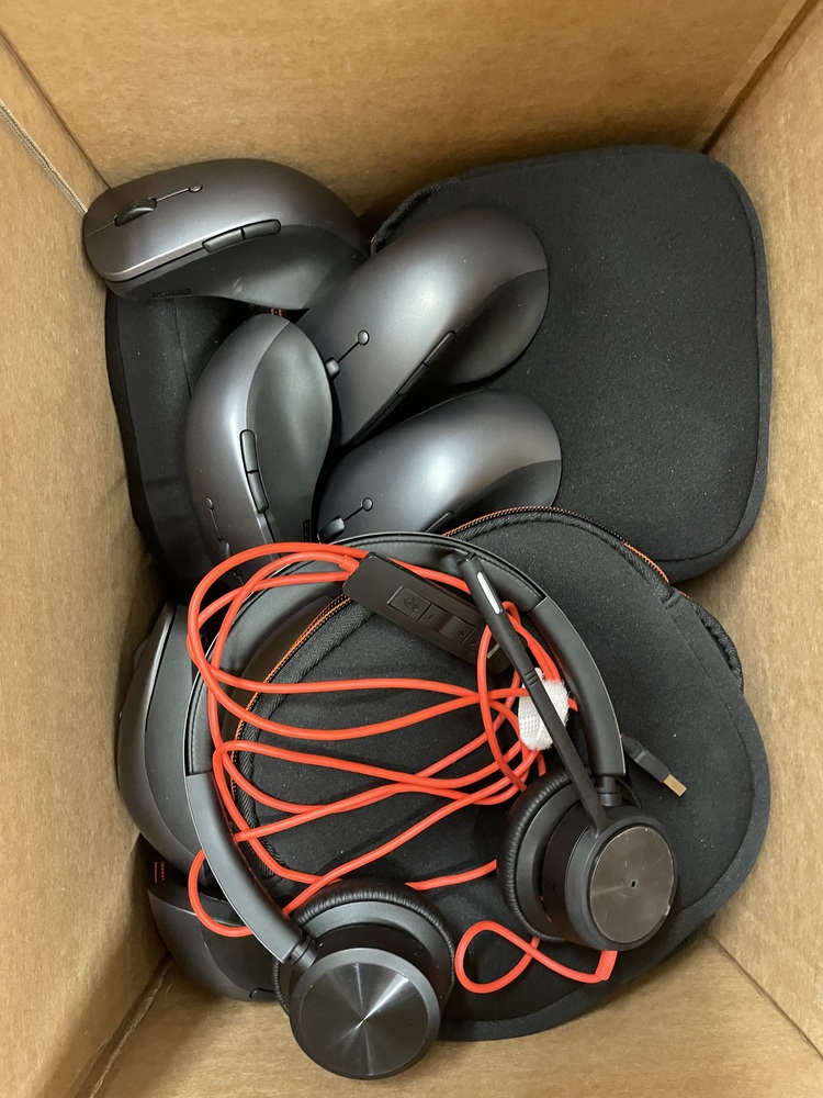 Box containing headphones