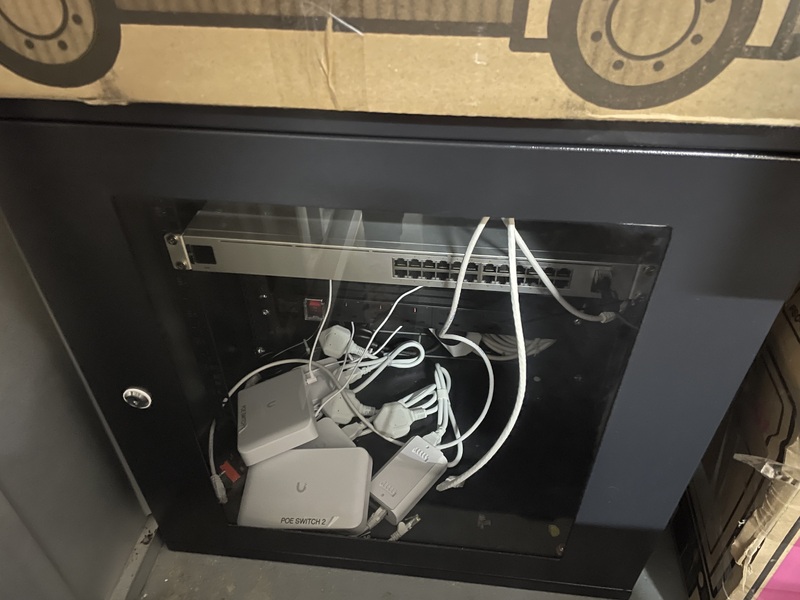 Box containing cables and power extensions