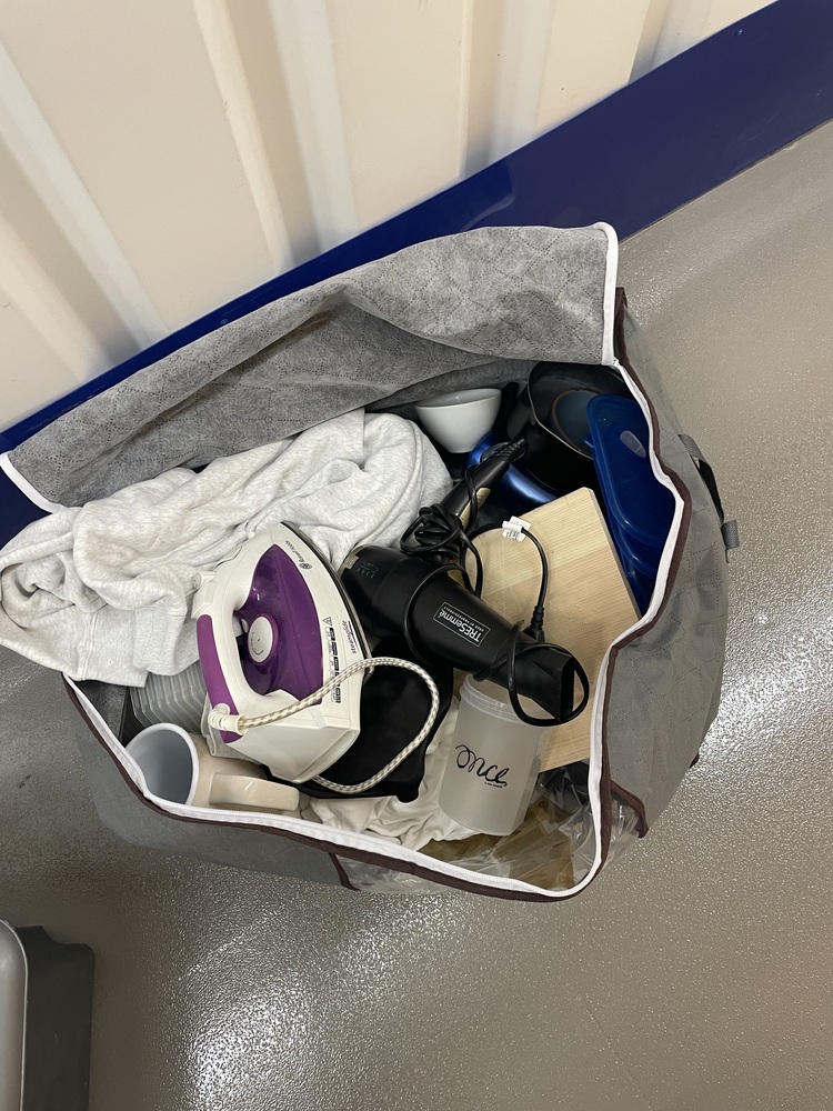 Bag containing hairdryer,iron and kitchen items
