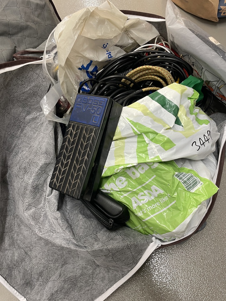 Bag containing rucksack,musical items,leads