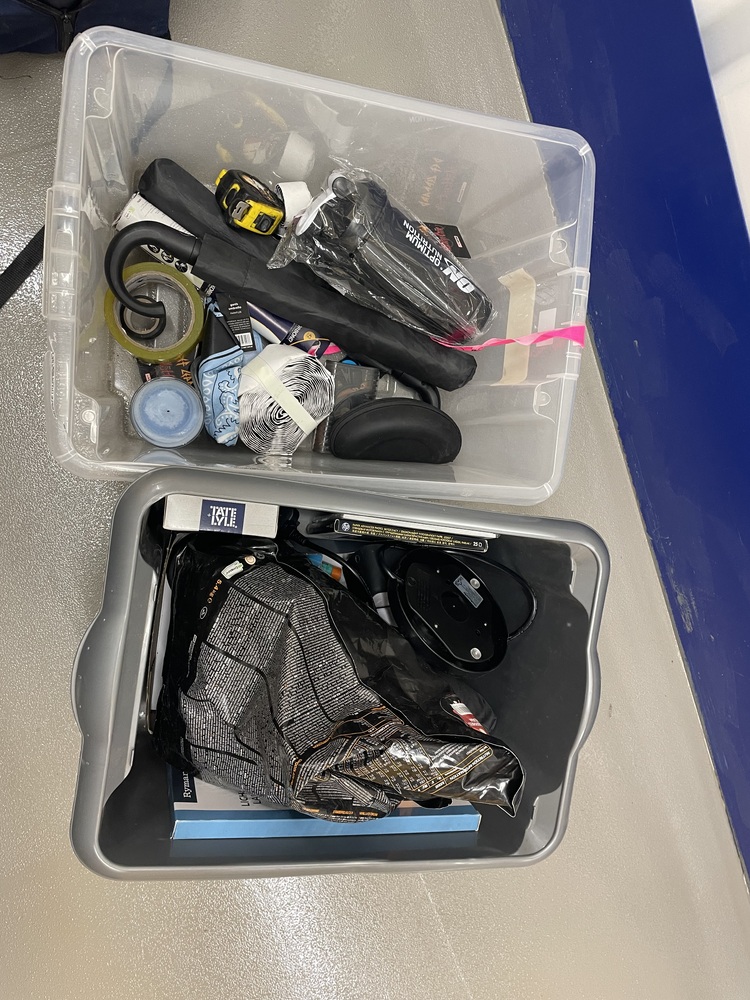 2 plastic containers of miscellaneous items