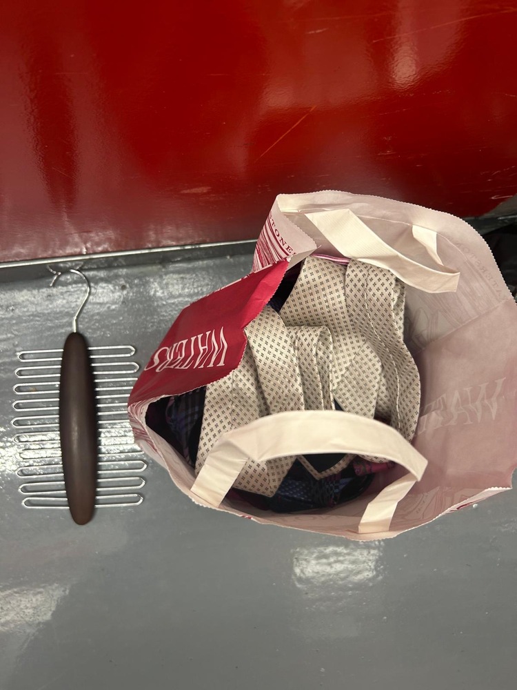 Bag of ties and tie rack