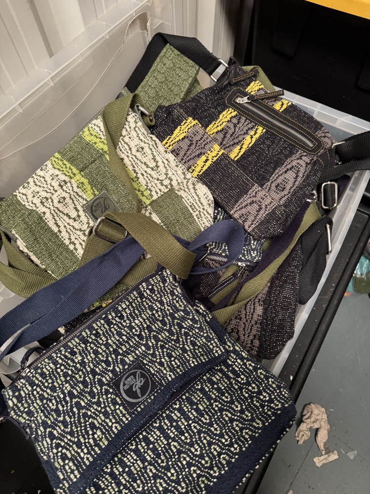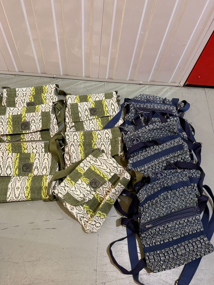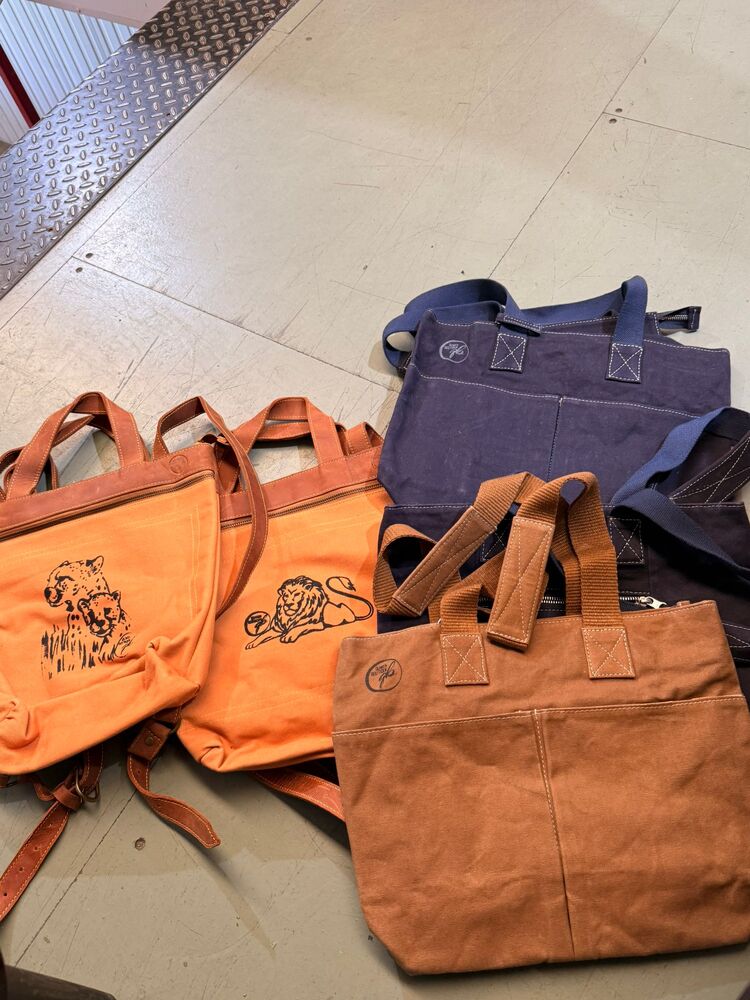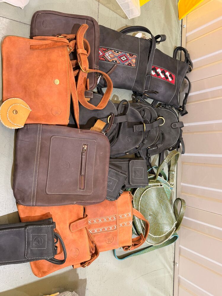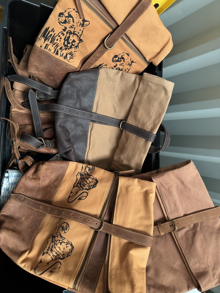 Satchels, backpacks, messenger bags, purses, coin purses, card holders, handbags, textiles, scarves, trousers, cover ups, beach robes, rugs, place settings,