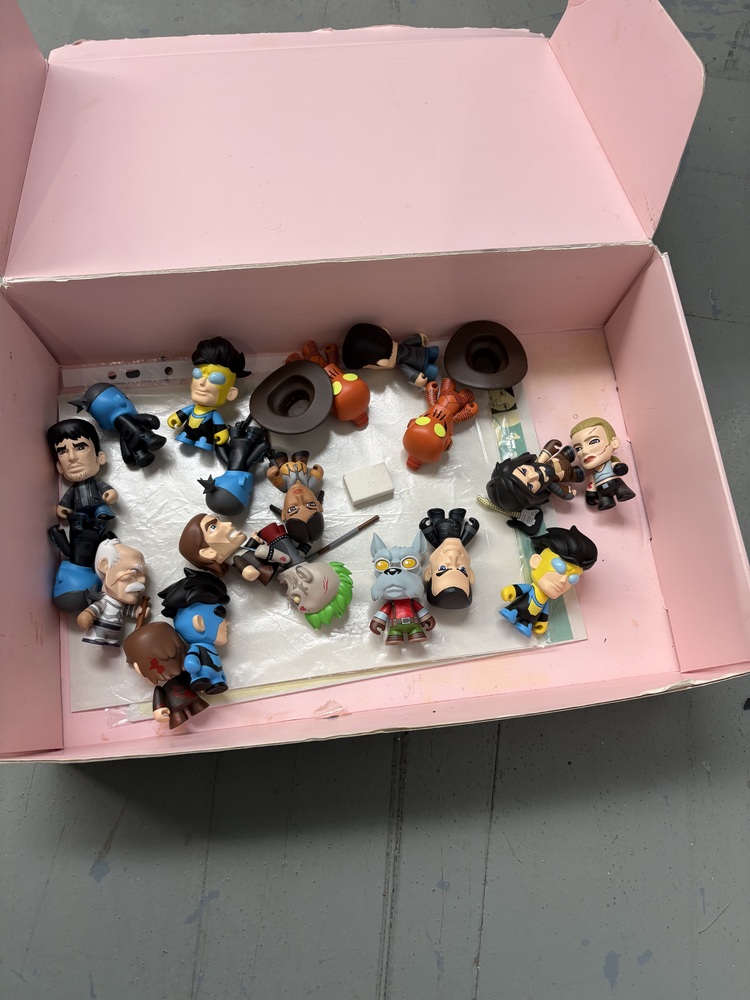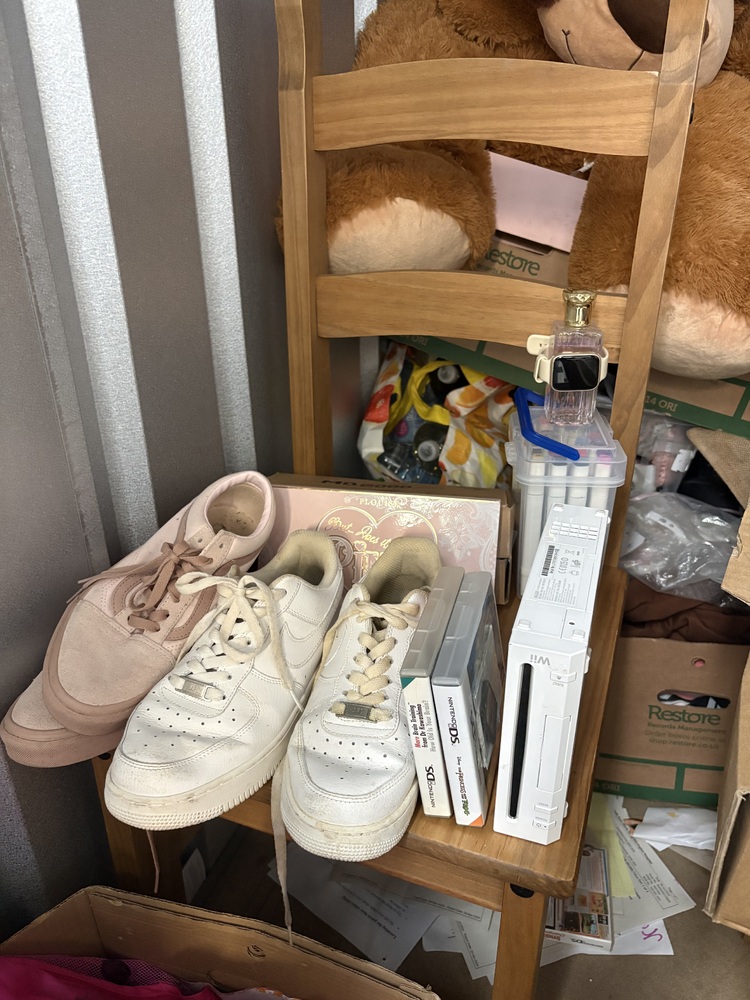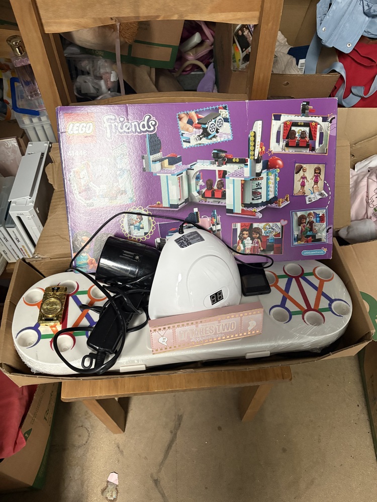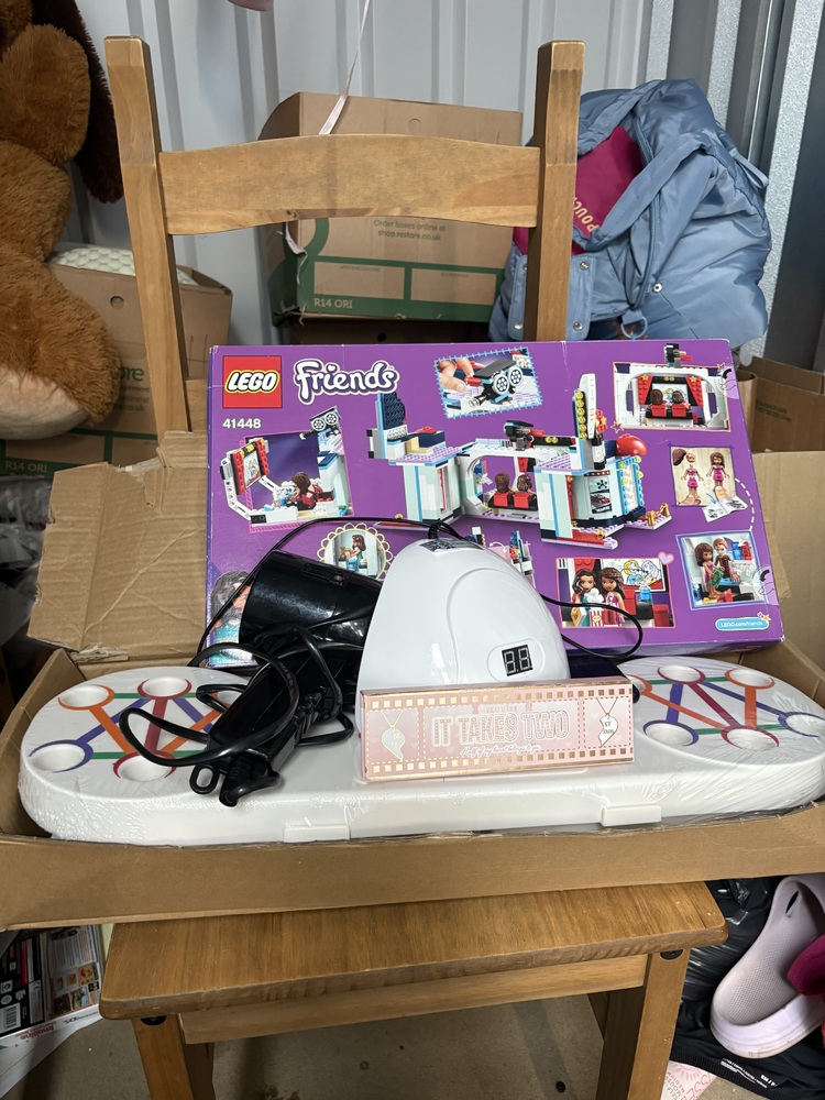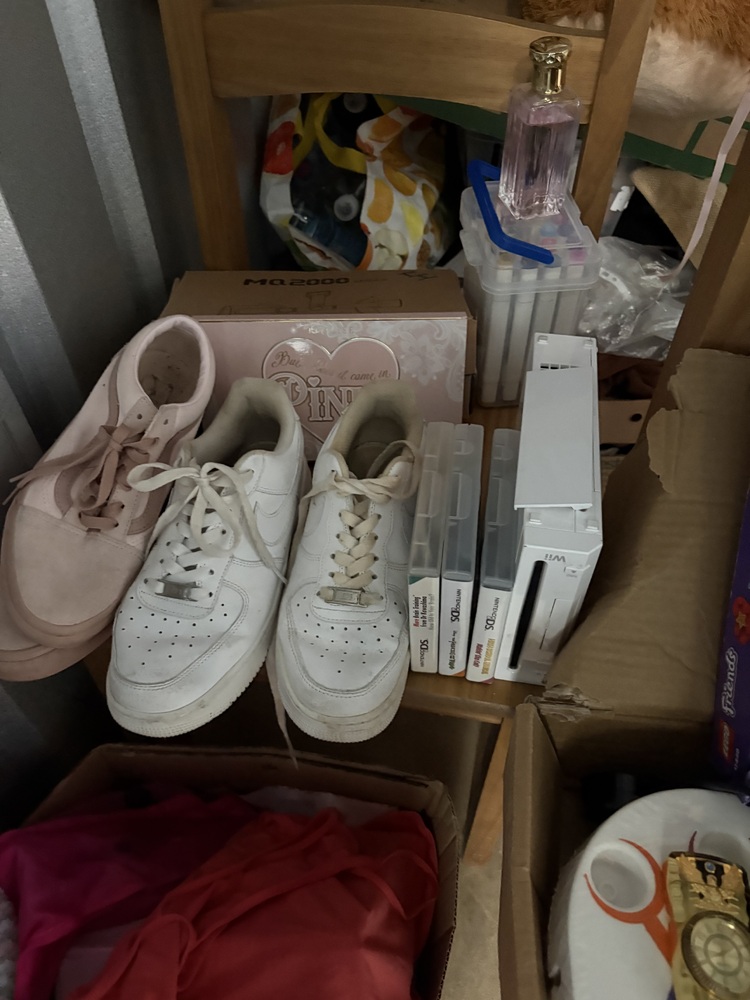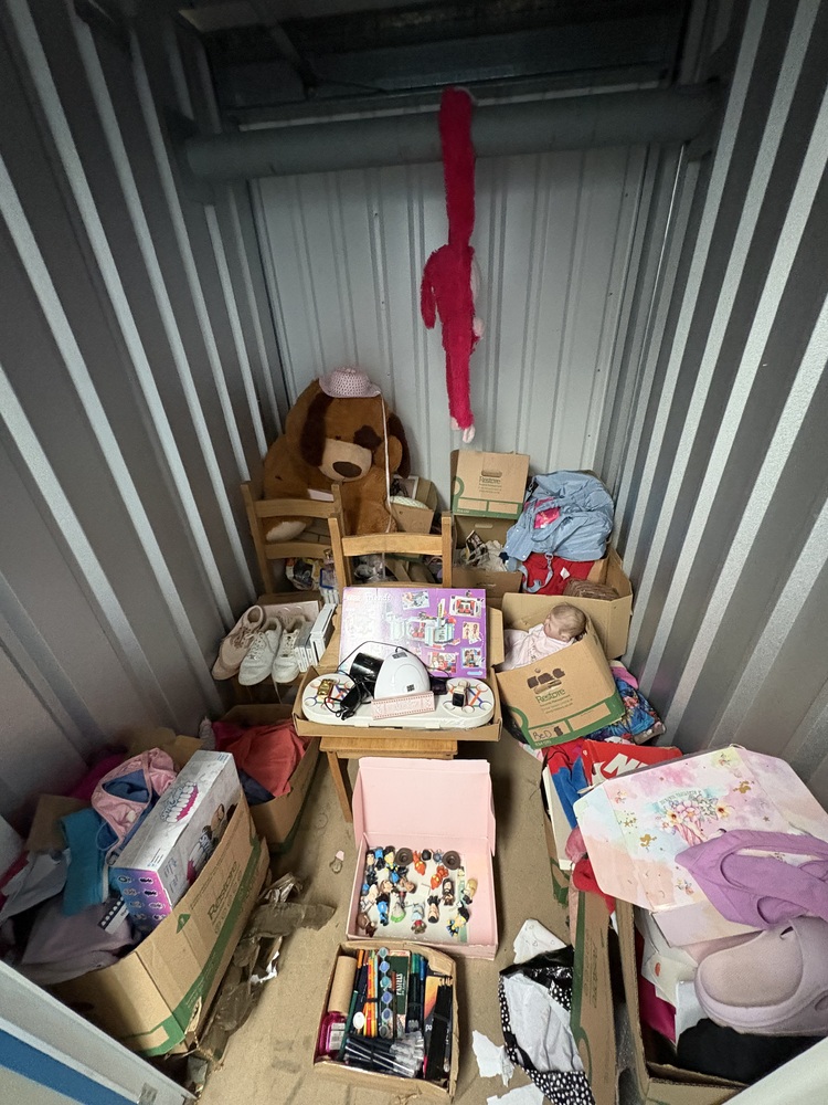 35 square foot unit. Full of boxes and bags. Lots of arts and crafts stuff. Notice able items you can see are push up machine, Nintendo wii, Nintendo ds games, smart watch. Lots of small figures