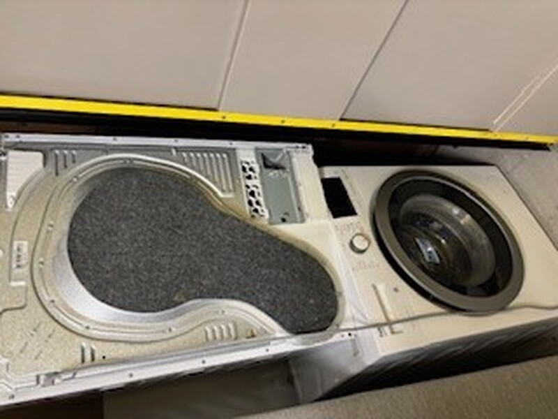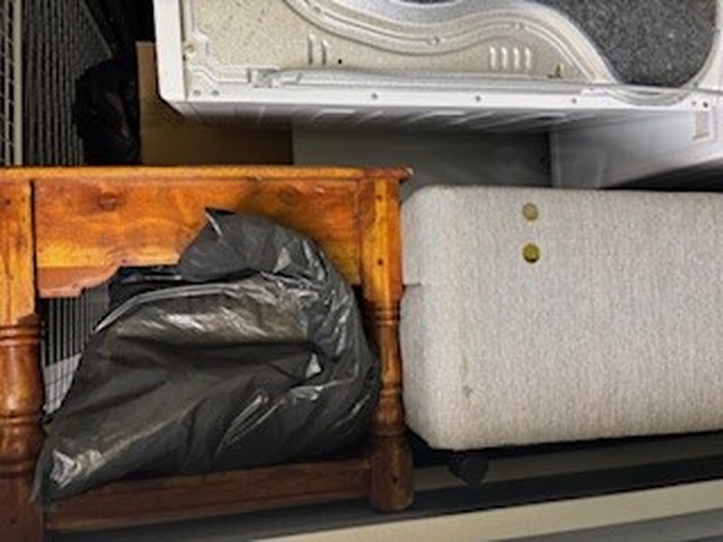 The unit is filled with households items, several washing machines and a fridge and what looks like lots of differant furiniture