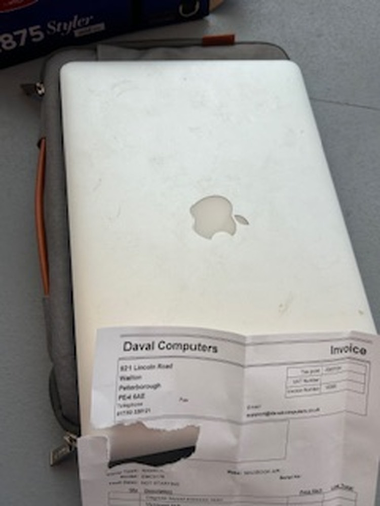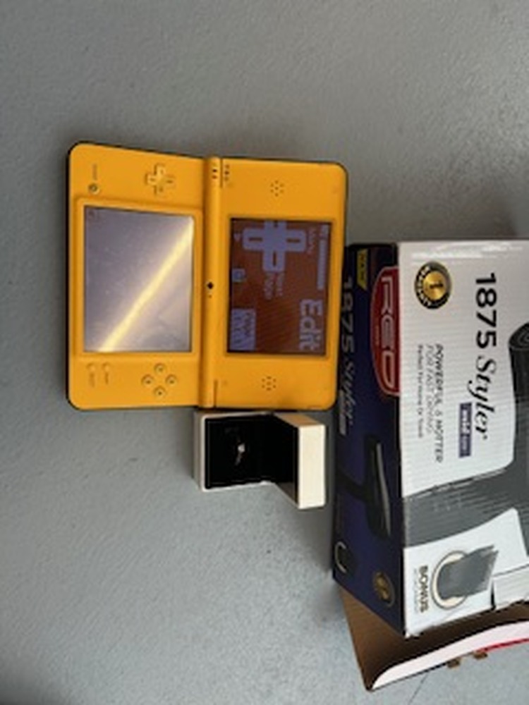 Contains Nintendo DS in Yellow, TLC Mobile phone, Non-repairable Mac Book Air, bags and suitcases with worn clothes in