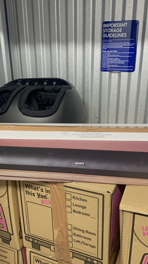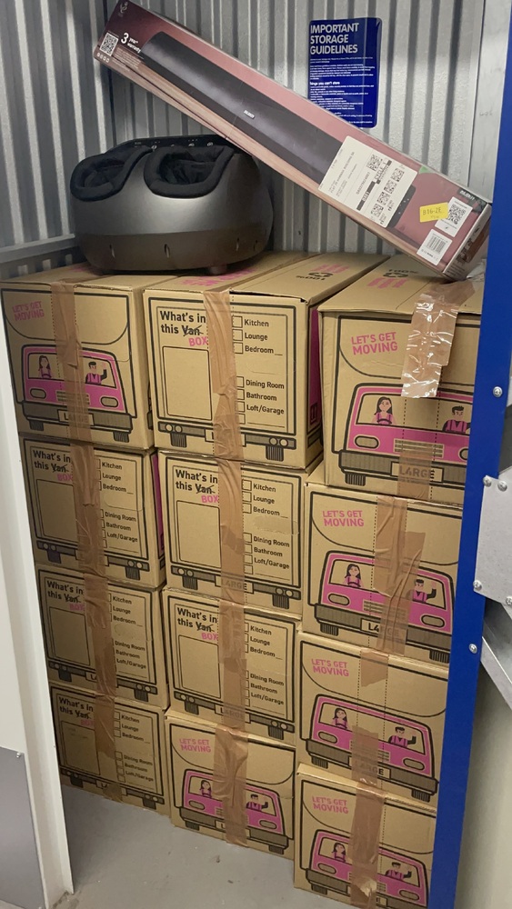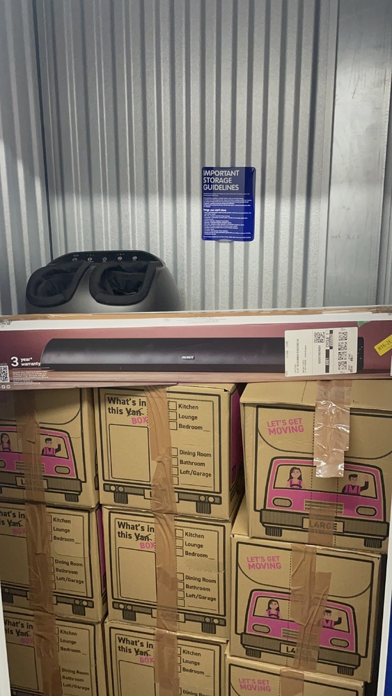 Does 10 ft.² unit had 12 boxes with unknown personal items? One sound bar and one what we think is a foot spa?