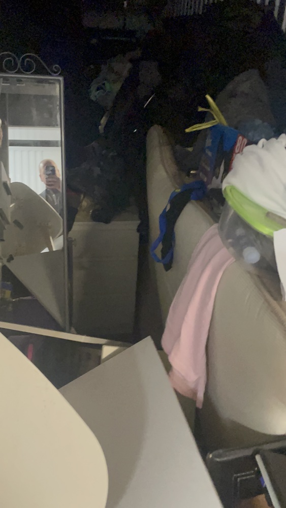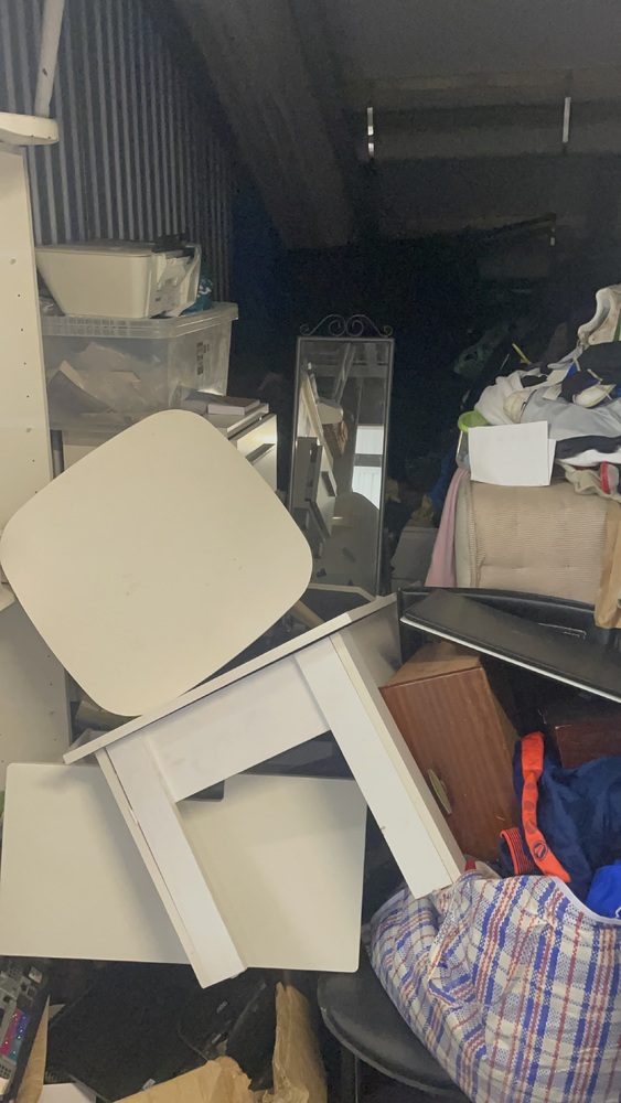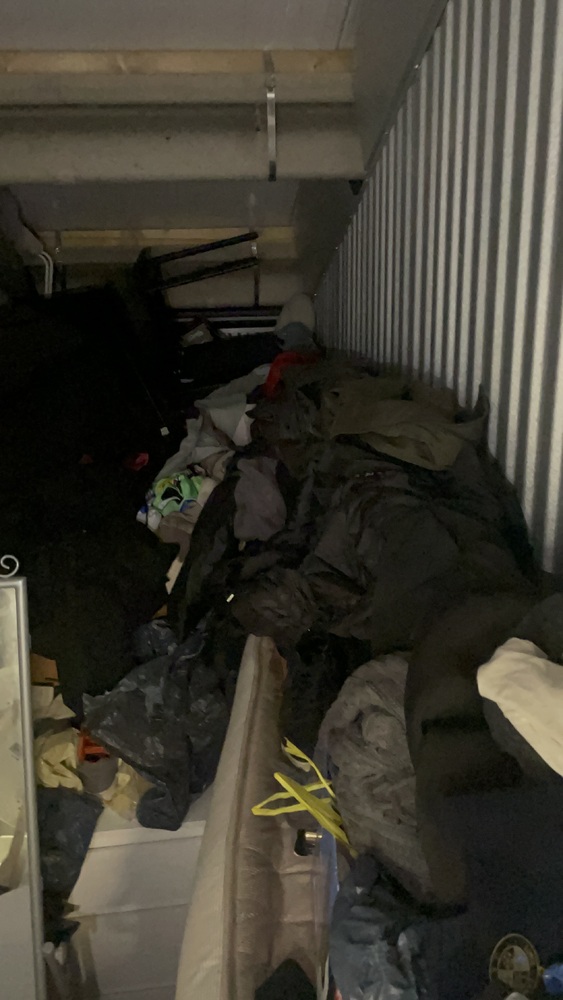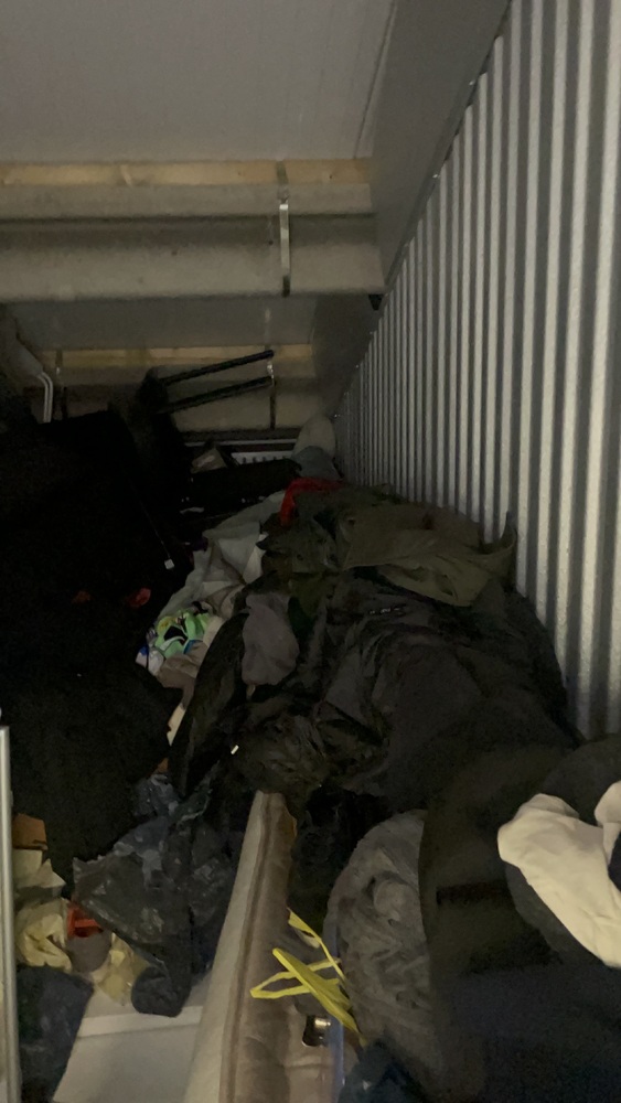 The 75 ft.² unit had a mixture of furniture items like shelving units coffee tables, side tables, potential bedroom furniture there may be a bed frame a double mattress to mirror PC and monitor laptop close bags and unknown personal items