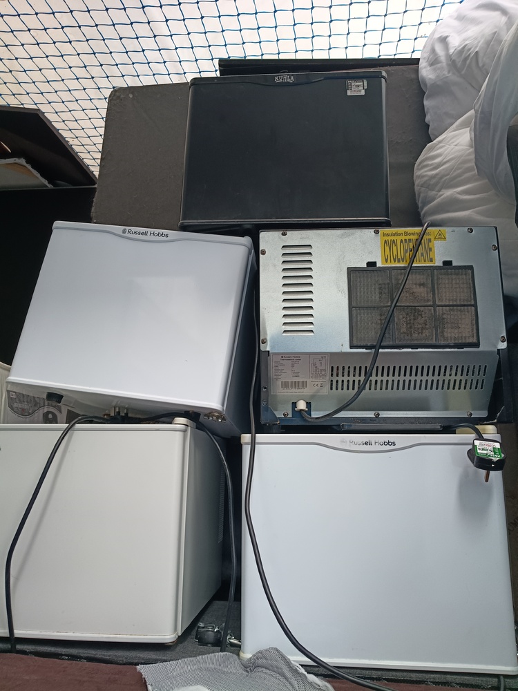 Sofas, beds, bed frames and divans, mattresses, various mini fridges, pictures, Duvets