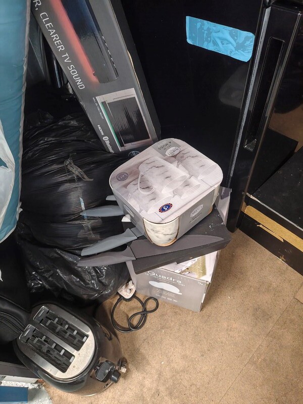 Steam mop, 50 inch samsung 4k tv, fridge, new duvet set, pillows and rug, new toaster, sealed goodmans sound bar